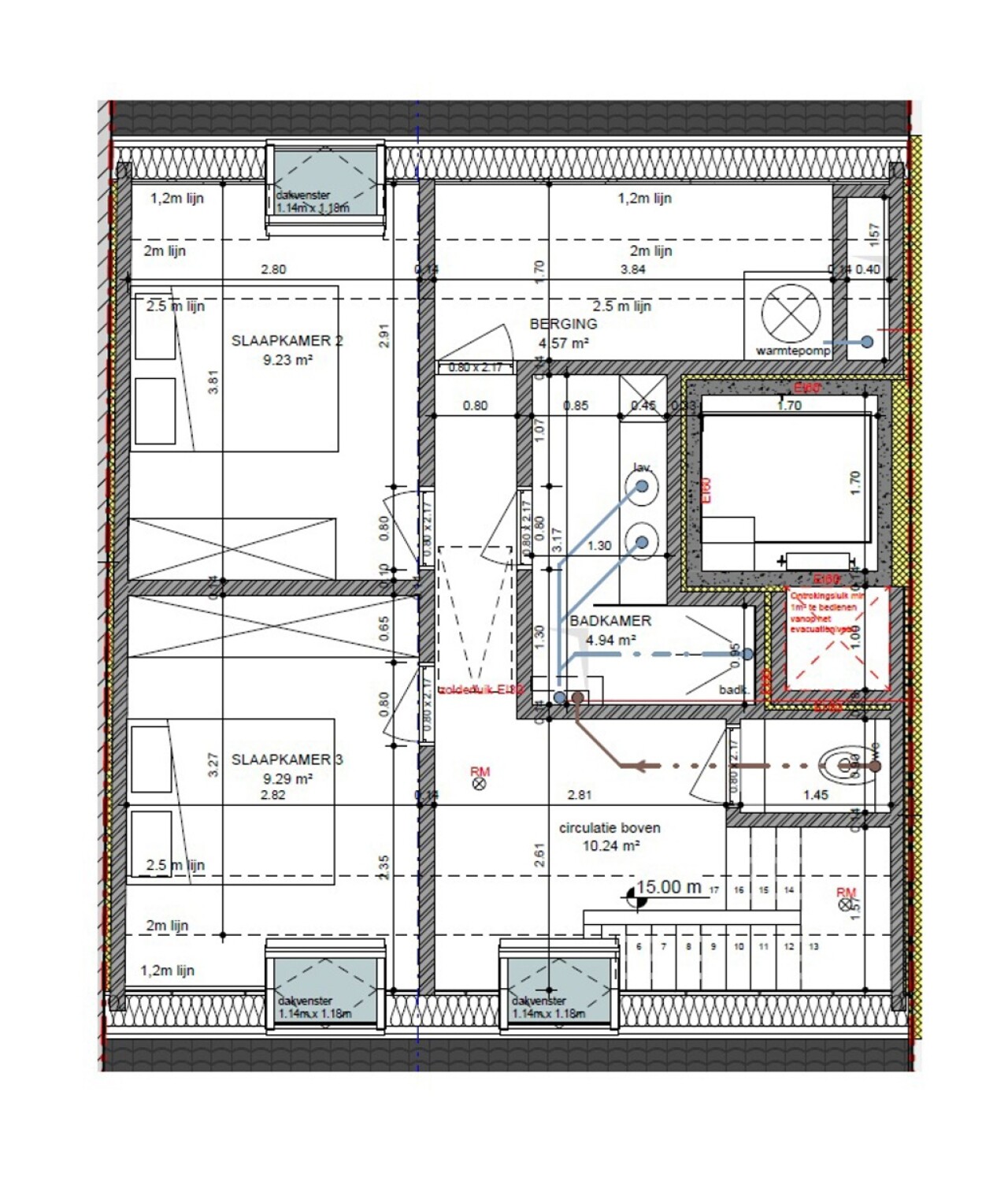 -Slaapverdieping met 2 slaapkamers, badkamer met douche, berging.