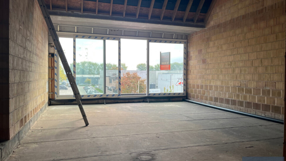 Eerste verdieping: hall, met mogelijkheid tot toilet en lift, leefruimte met open keuken (open over de verdieping - OPVORMEN TOT DUPLEX MOGELIJK!), berging, badkamer en 3 slaapkamers.