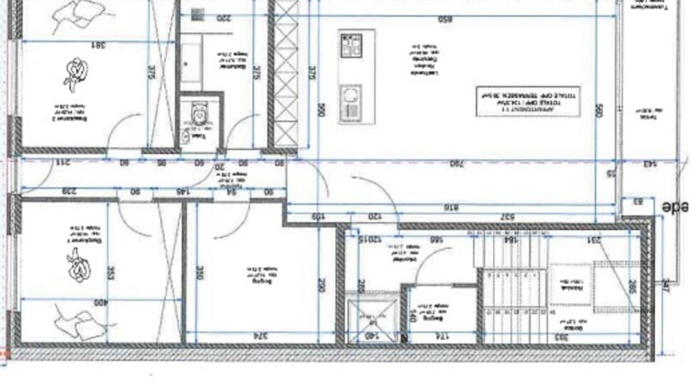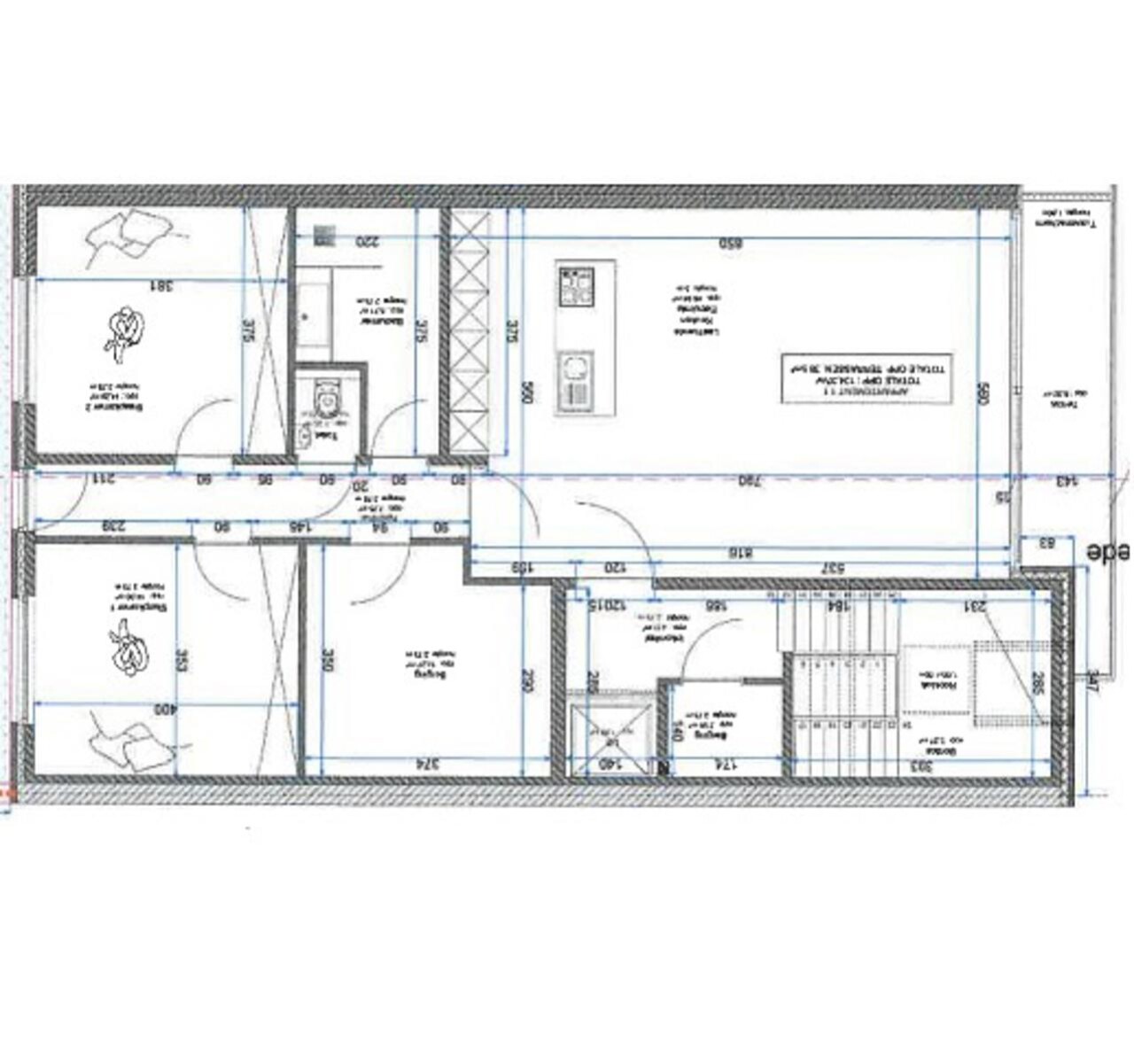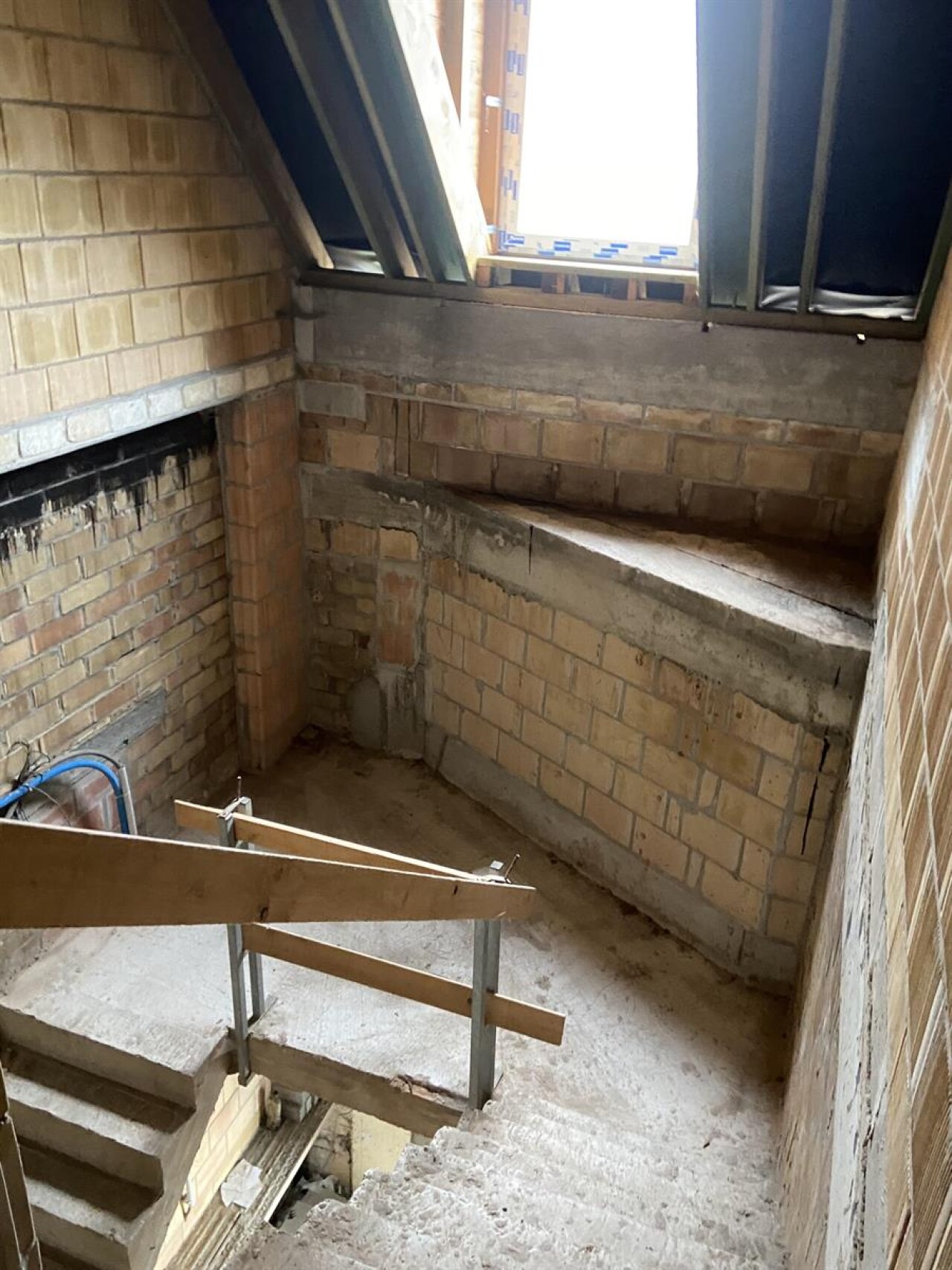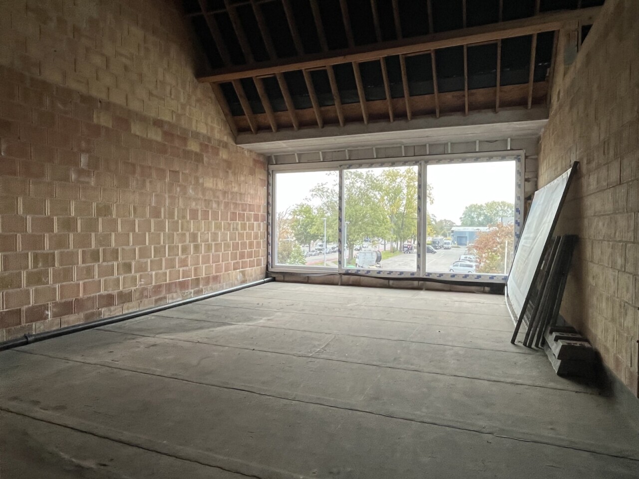 Eerste verdieping: hall, met mogelijkheid tot toilet en lift, leefruimte met open keuken (open over de verdieping - OPVORMEN TOT DUPLEX MOGELIJK!), berging, badkamer en 3 slaapkamers.