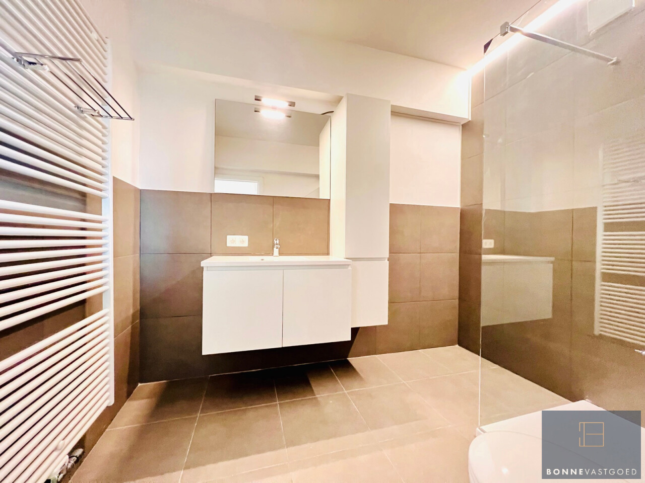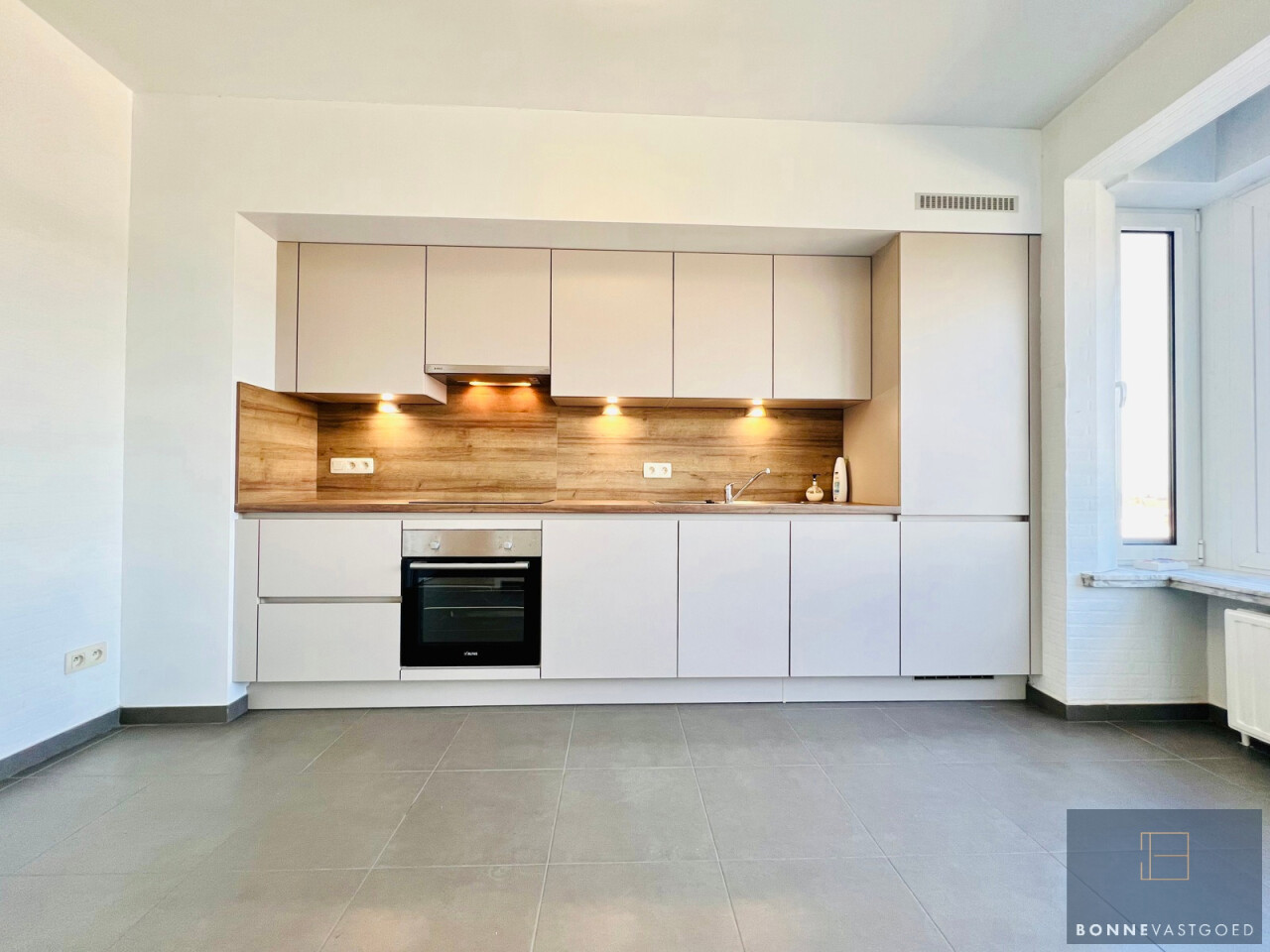 Het appartement werd gerenoveerd en voorzien van nieuwe: ramen, keuken, badkamer, vloeren, goedgekeurde elektriciteit,…