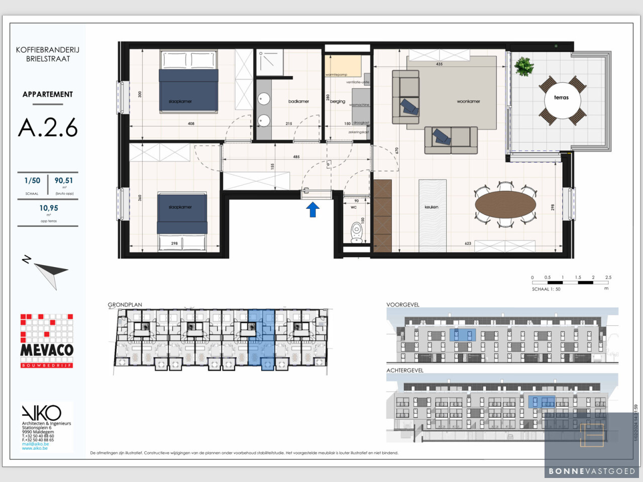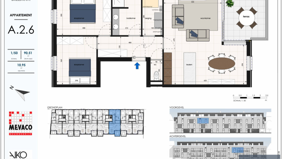 Op de gelijkvloerse verdieping is er nog keuze uit 1-2 slaapkamer appartementen. Op verdieping 1 en 2 zijn dit 2 slaapkamer appartementen.