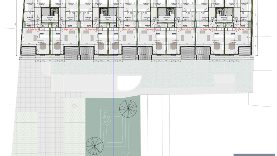 Ondergronds zijn zowel parkeergarages, staanplaatsen als fietsenstalling terugvinden. Bovengronds wordt nog een extra fietsenberging voorzien met parkeerplaatsen.