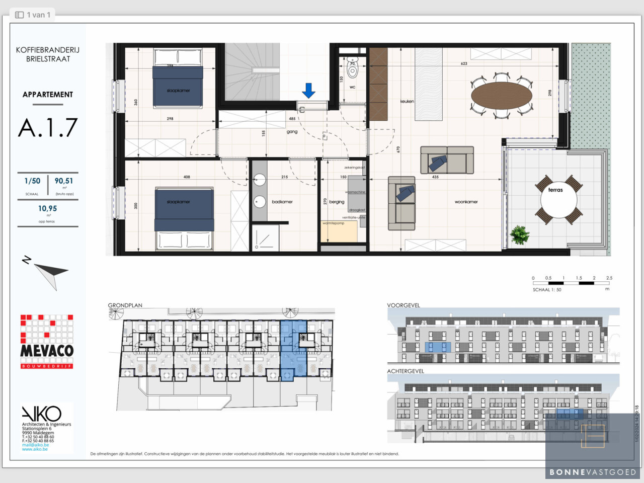 Op de gelijkvloerse verdieping is er nog keuze uit 1-2 slaapkamer appartementen. Op verdieping 1 en 2 zijn dit 2 slaapkamer appartementen.