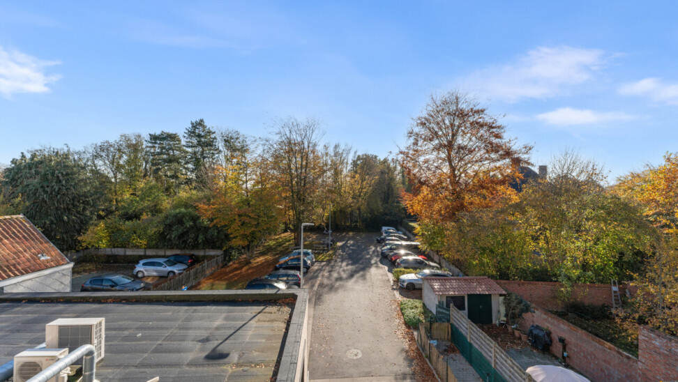 Achter het gebouw is een openbaar parkeerdomein. U hoeft geen parking mee aan te kopen en kunt er steeds parkeren.
