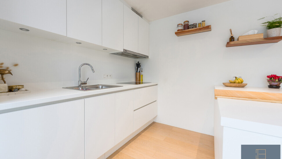 Het appartement is uitgerust met kwaliteitsvolle parketvloer in leefruimtes en slaapkamers. De badkamer en bergingen zijn van tegels voorzien.