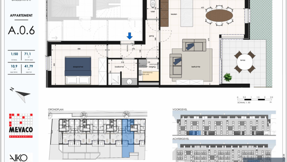 Deze zullen uiteraard aan alle hedendaagse energienormen voldoen. Ieder appartement is voorzien van GEOTHERMISCHE WARMTEPOMPEN, vloerverwarming met passieve koeling en ZONNEPANELEN. Het gebouw heeft een zuidgerichte oriëntatie waardoor je steeds kan genieten van het zonnetje vanop je terras of in je tuintje.