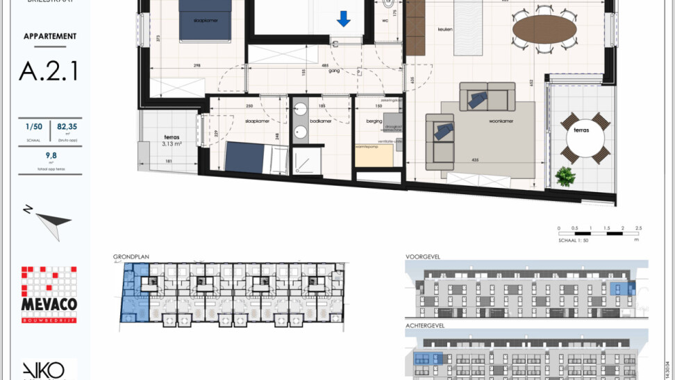 Op de gelijkvloerse verdieping is er nog keuze uit 1-2 slaapkamer appartementen. Op verdieping 1 en 2 zijn dit 2 slaapkamer appartementen.