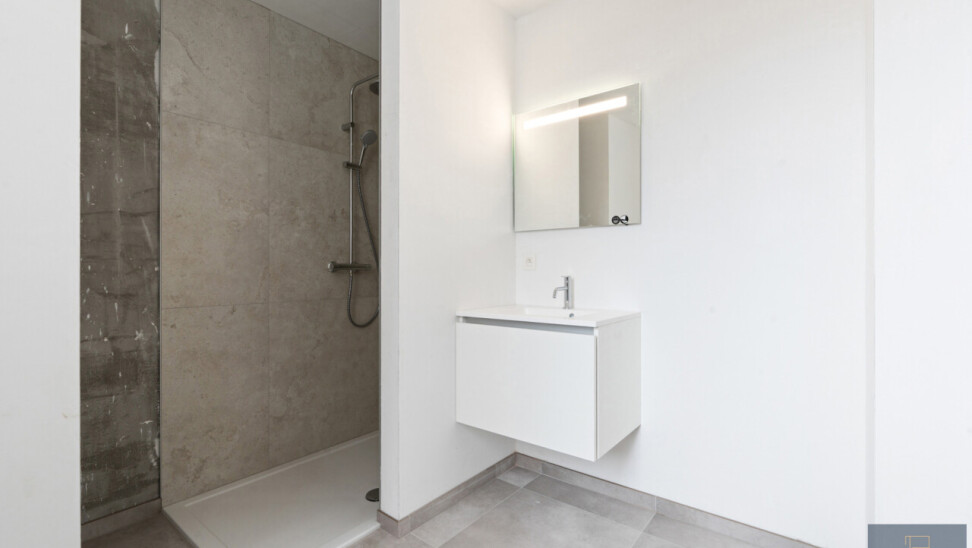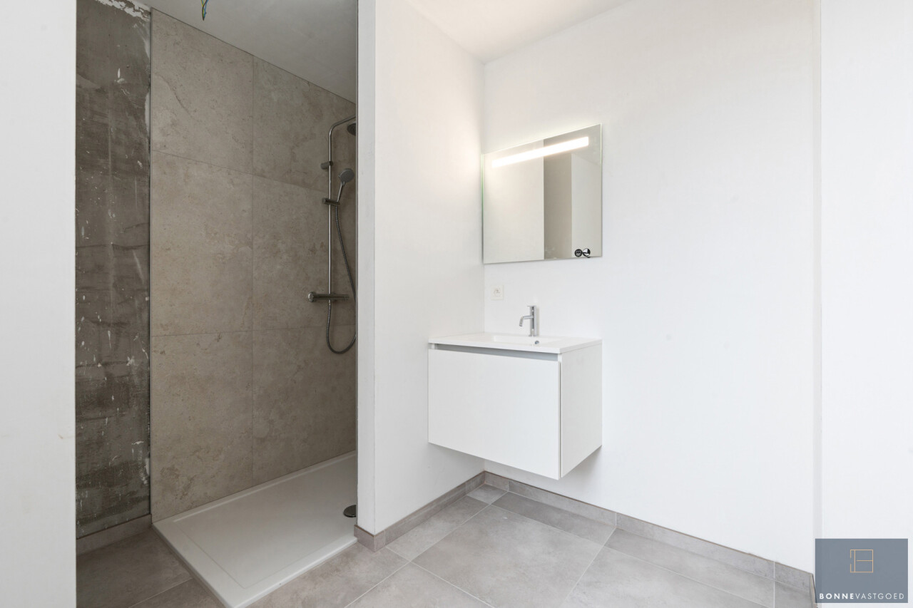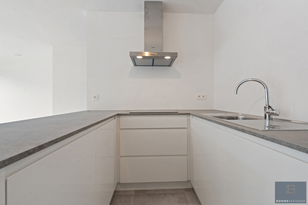 Het appartement verwelkomt u met een inkomhal en een apart gastentoilet. De ruime en lichtrijke leefruimte sluit naadloos aan op de volledig ingerichte open keuken, met aansluitend een praktische grote berging. Verder beschikt het appartement over een moderne badkamer met inloopdouche en een ruime slaapkamer, met voldoende plaats voor een dressing of bureauruimte.