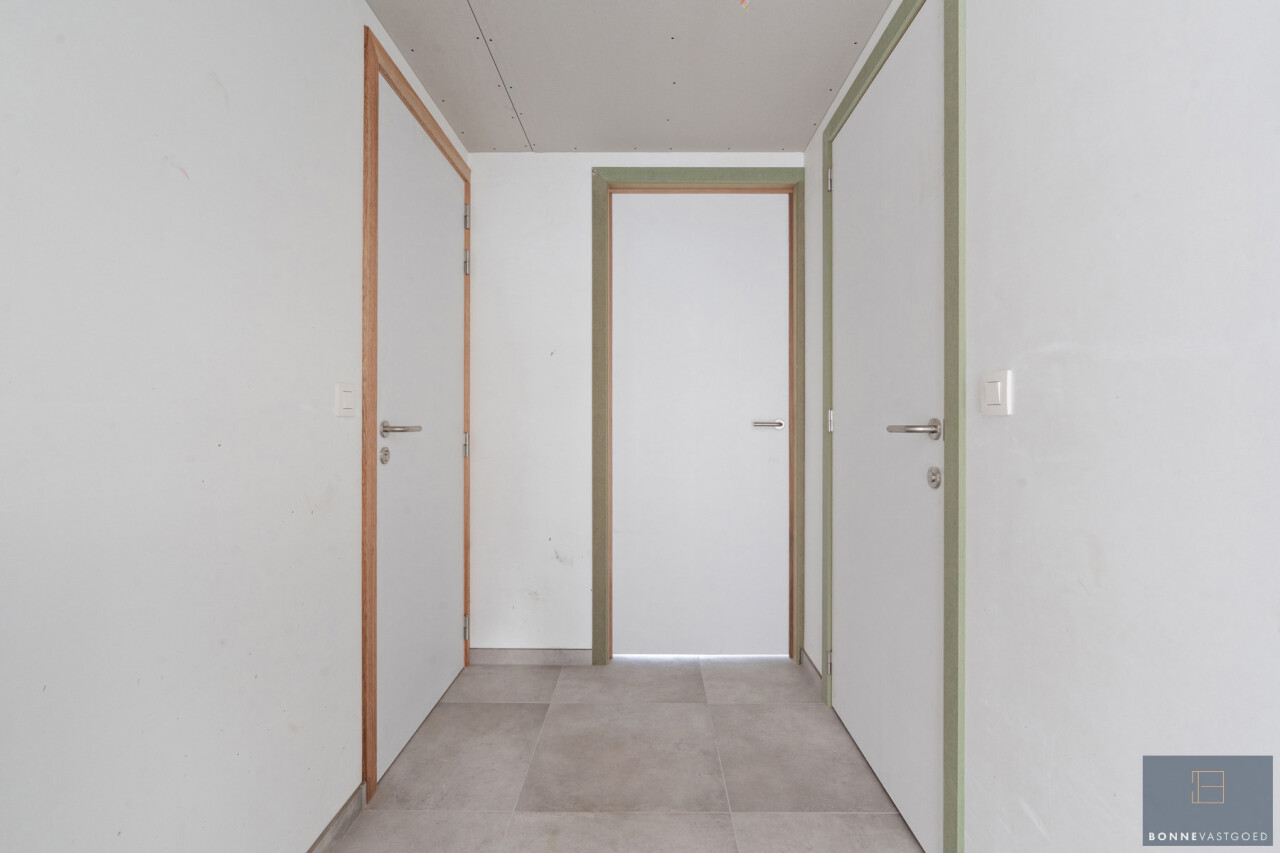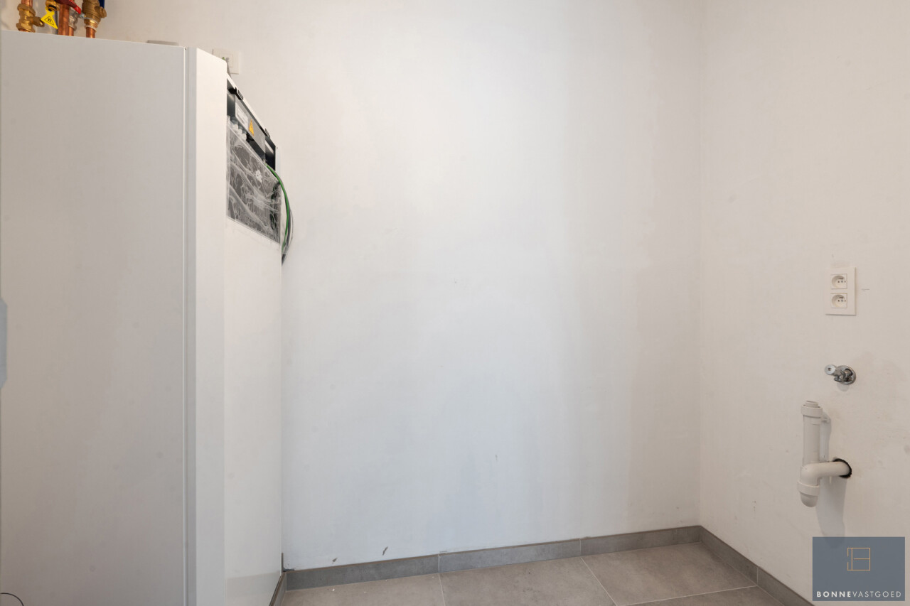 Het appartement verwelkomt u met een inkomhal en een apart gastentoilet. De ruime en lichtrijke leefruimte sluit naadloos aan op de volledig ingerichte open keuken, met aansluitend een praktische grote berging. Verder beschikt het appartement over een moderne badkamer met inloopdouche en een ruime slaapkamer, met voldoende plaats voor een dressing of bureauruimte.