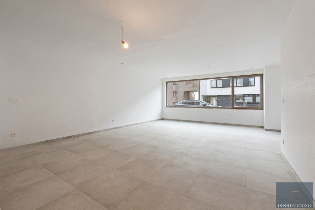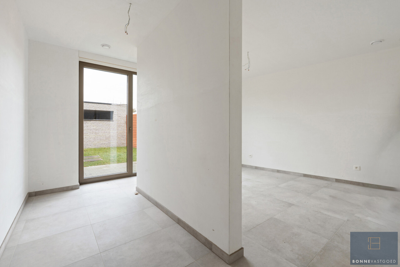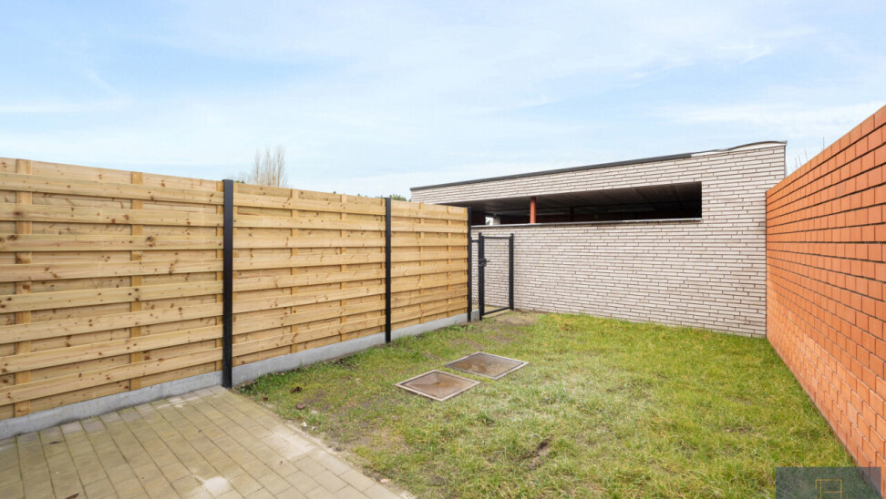 Buiten genieten kan volop op het privatief terras en de aangename tuin, voorzien van een handig achterpoortje. Bovendien is er een privatieve kelderberging inbegrepen, alsook een gemeenschappelijke fietsenstalling.