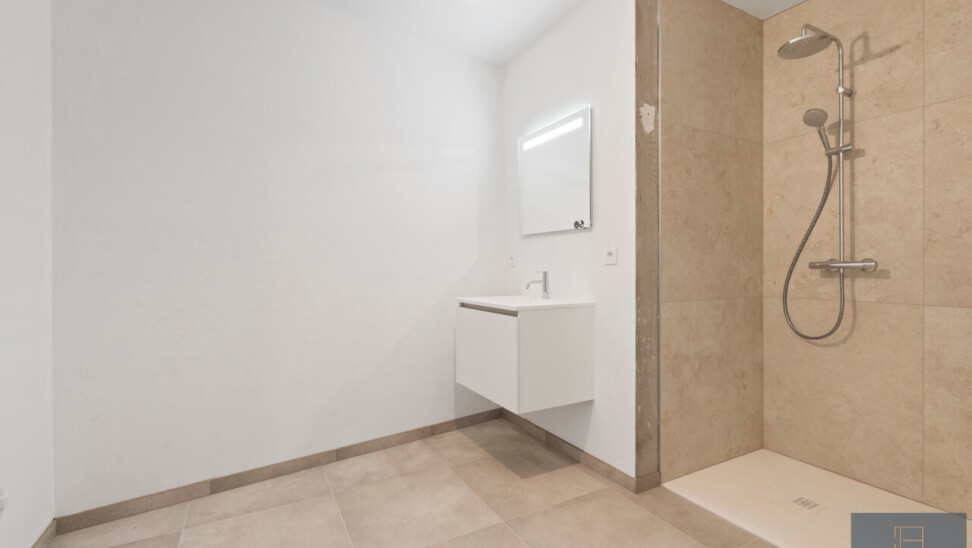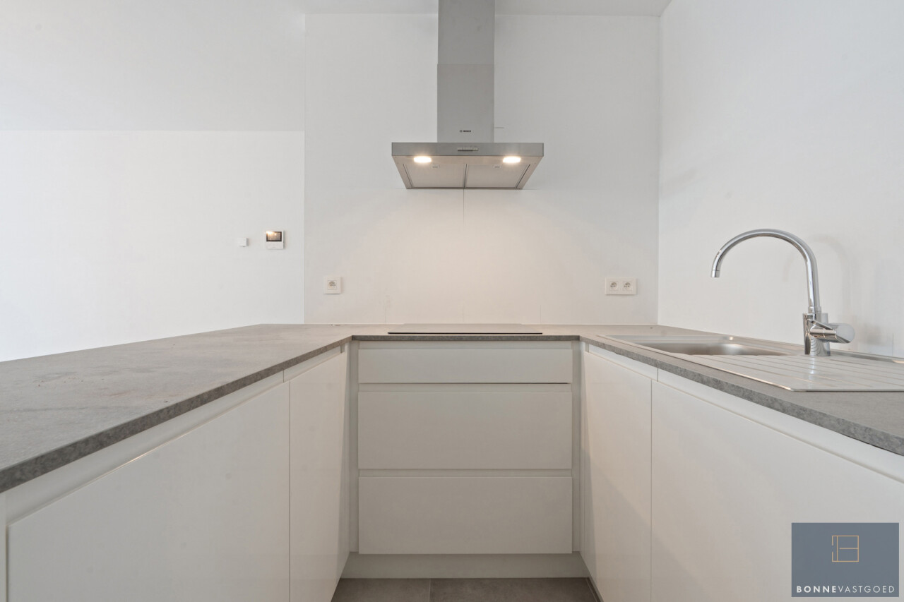 Het appartement verwelkomt u met een inkomhal en een apart gastentoilet. De ruime en lichtrijke leefruimte sluit naadloos aan op de volledig ingerichte open keuken, met aansluitend een praktische grote berging. Verder beschikt het appartement over een moderne badkamer met inloopdouche en een ruime slaapkamer, met voldoende plaats voor een dressing of bureauruimte.