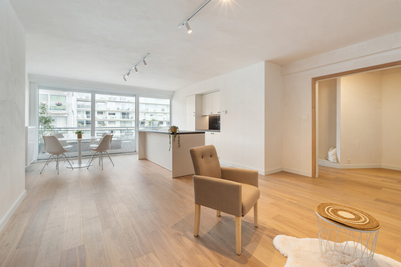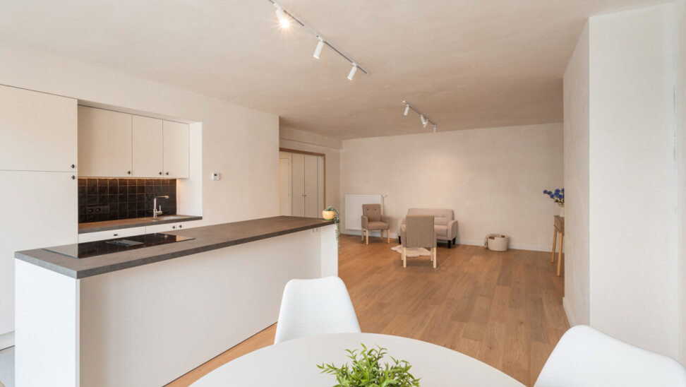 Dit appartement werd volledig gerenoveerd met o.a. nieuwe sanitair, verwarming, elektriciteit, keuken, badkamer,... Ook de aanwezige lichtarmaturen zijn reeds inbegrepen in de prijs.