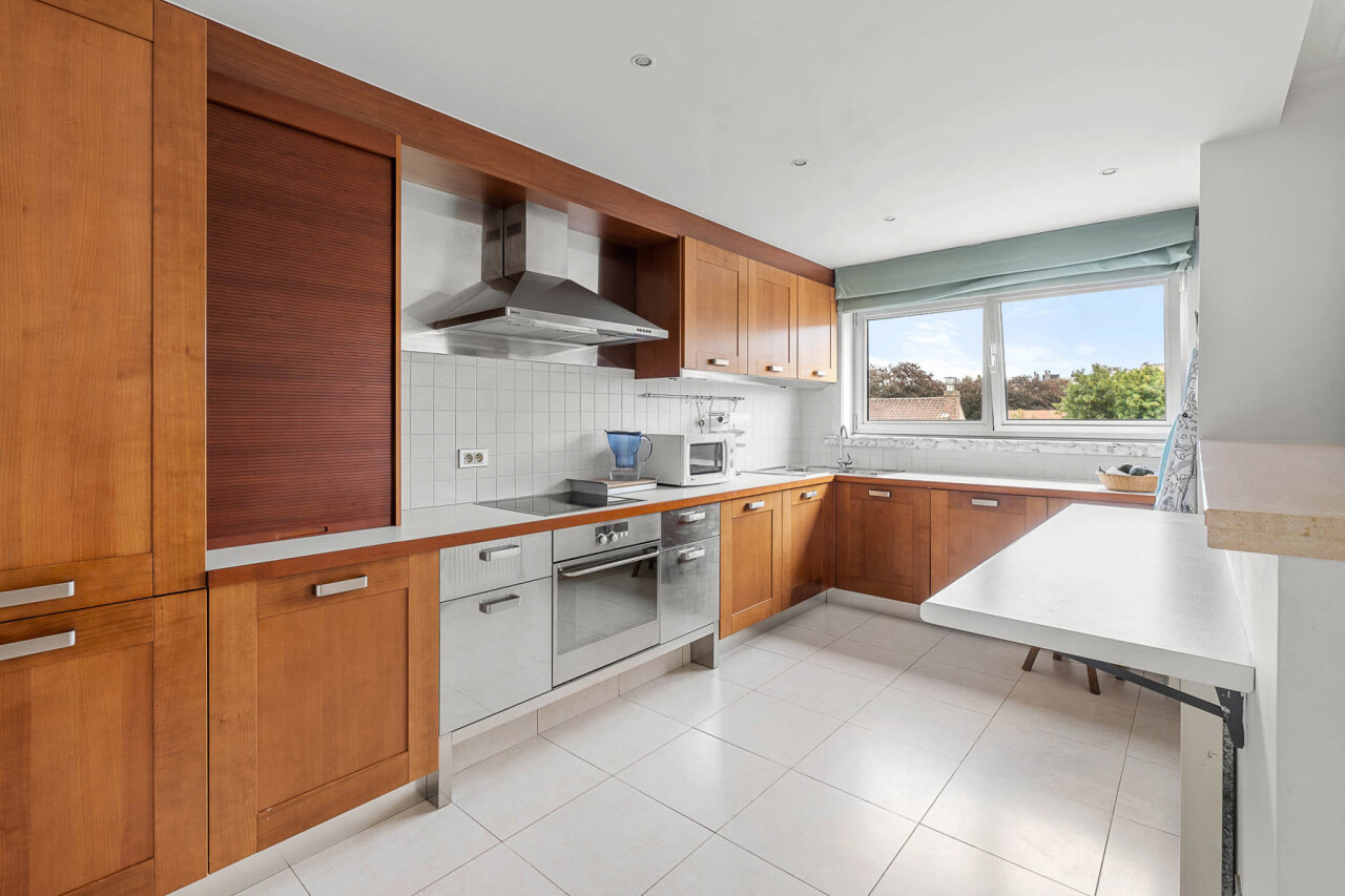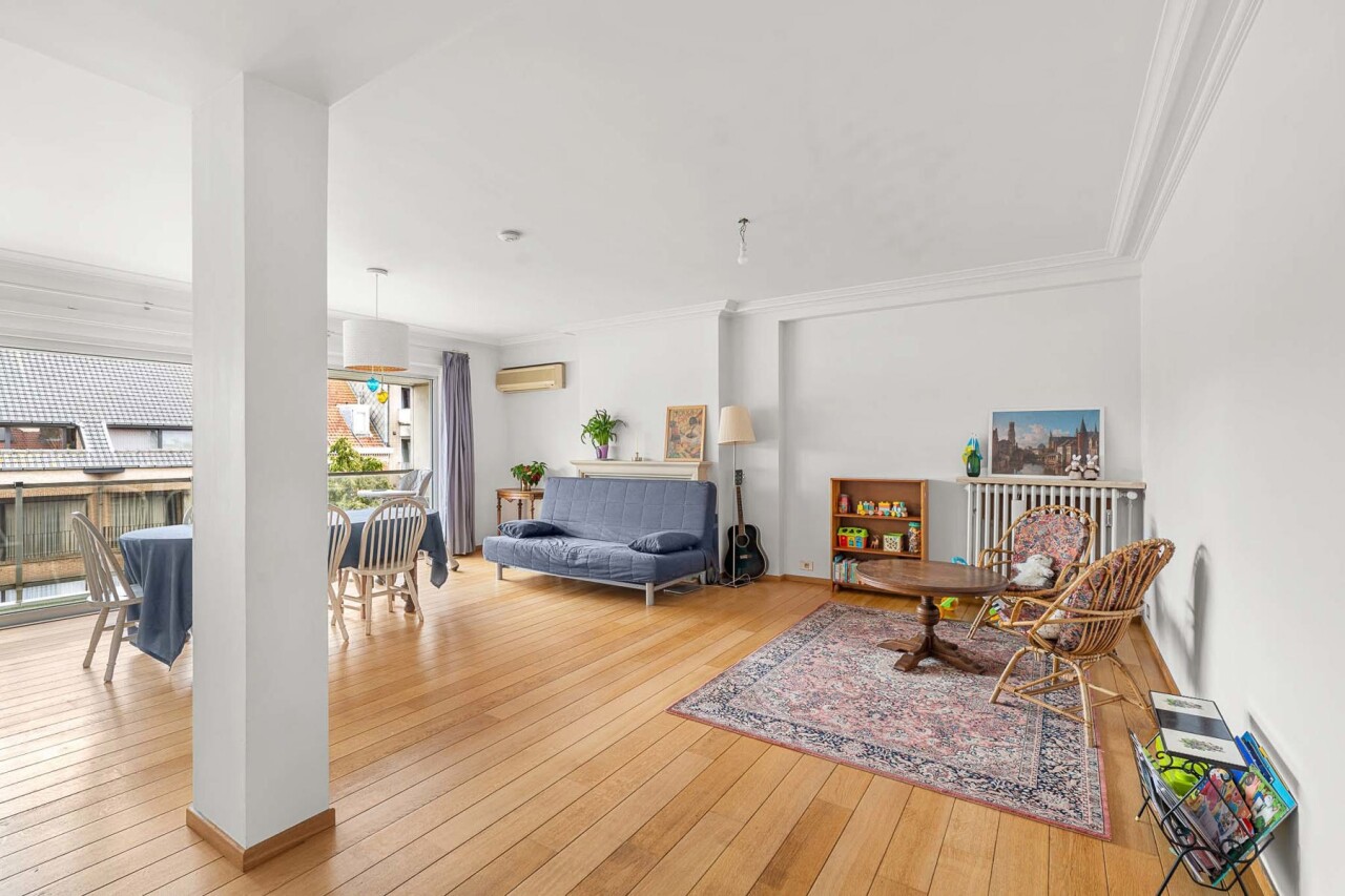 Het appartement is ingedeeld in: inkom hal met natuusteenvloer, gastentoilet, leefruimte (35m²) met parketvloer, uitgeruste keuken (met oven, dampkap, koelkast, vaatwas, kookplaat en voldoende kastruimte, berging met aansluiting voor wasmachine, badkamer met ligbad, douchekamer en 3 slaapkamers. Daarnaast zijn er ook 2 terrassen waarvan 1 met toegang vanuit de leefruimte en 1 uit slaapkamer.