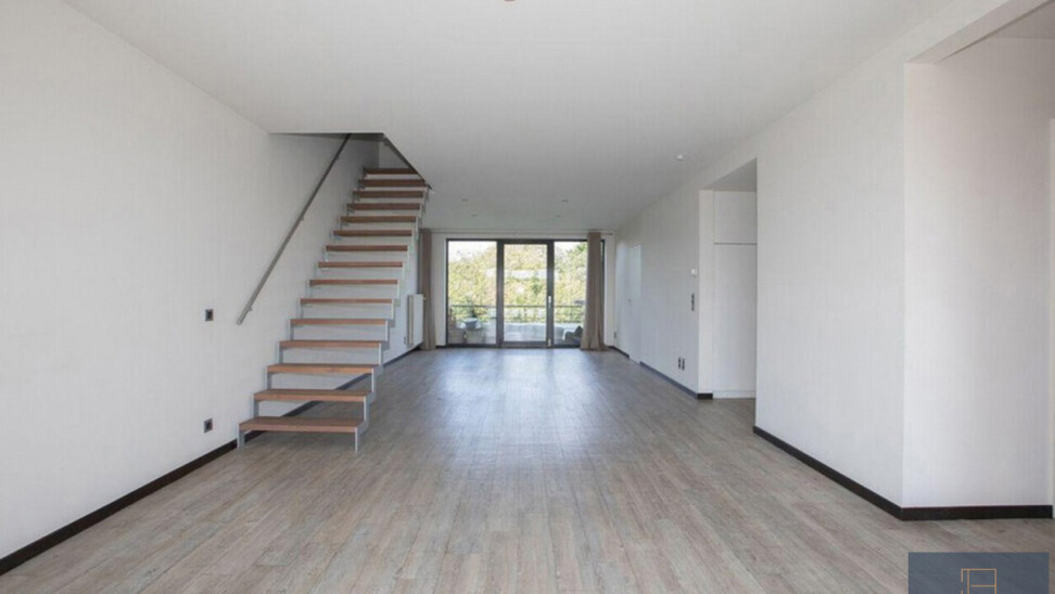 Derde verdieping: ruime en lichtrijke woonkamer (51m²) met rechtstreekse toegang tot de twee ruime terrassen, volledig geïnstalleerde keuken (10m²) met aansluitende berging, bureau/derde kamer (13m²), ook via deze kamer kunt U naar het terras, badkamer met enkele wastafel, douche en gastentoilet. Bij het binnenkomen is er tevens een ingemaakte vestiairekast voorzien. Via de moderne trap krijgt U toegang tot de vierde verdieping.