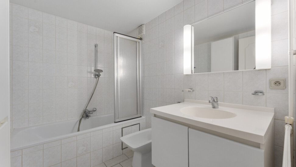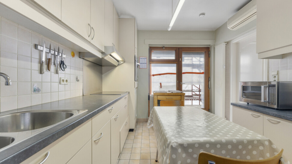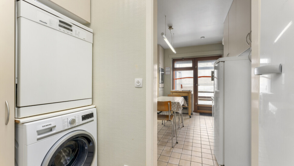 Het appartement is ingedeeld in: inkom, gastentoilet, leefruimte met zithoek en eetplaats, uitgeruste keuken, berging met aansluiting voor wasmachine, badkamer (ligbad met douchescherm, lavabomeubel en bidet) en 3 slaapkamers (waarvan 1 met maatkasten als bureel ingericht).