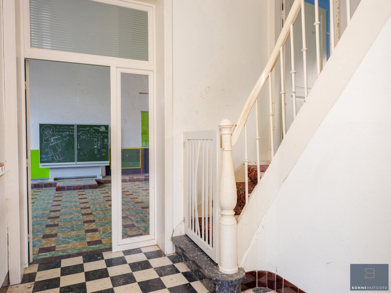 gelijkvloers: basis- en kleuterschool omvattende diverse klaslokalen, gangen, sanitaire voorziening, leraarslokaal, sportzaal, kinderopvang,...