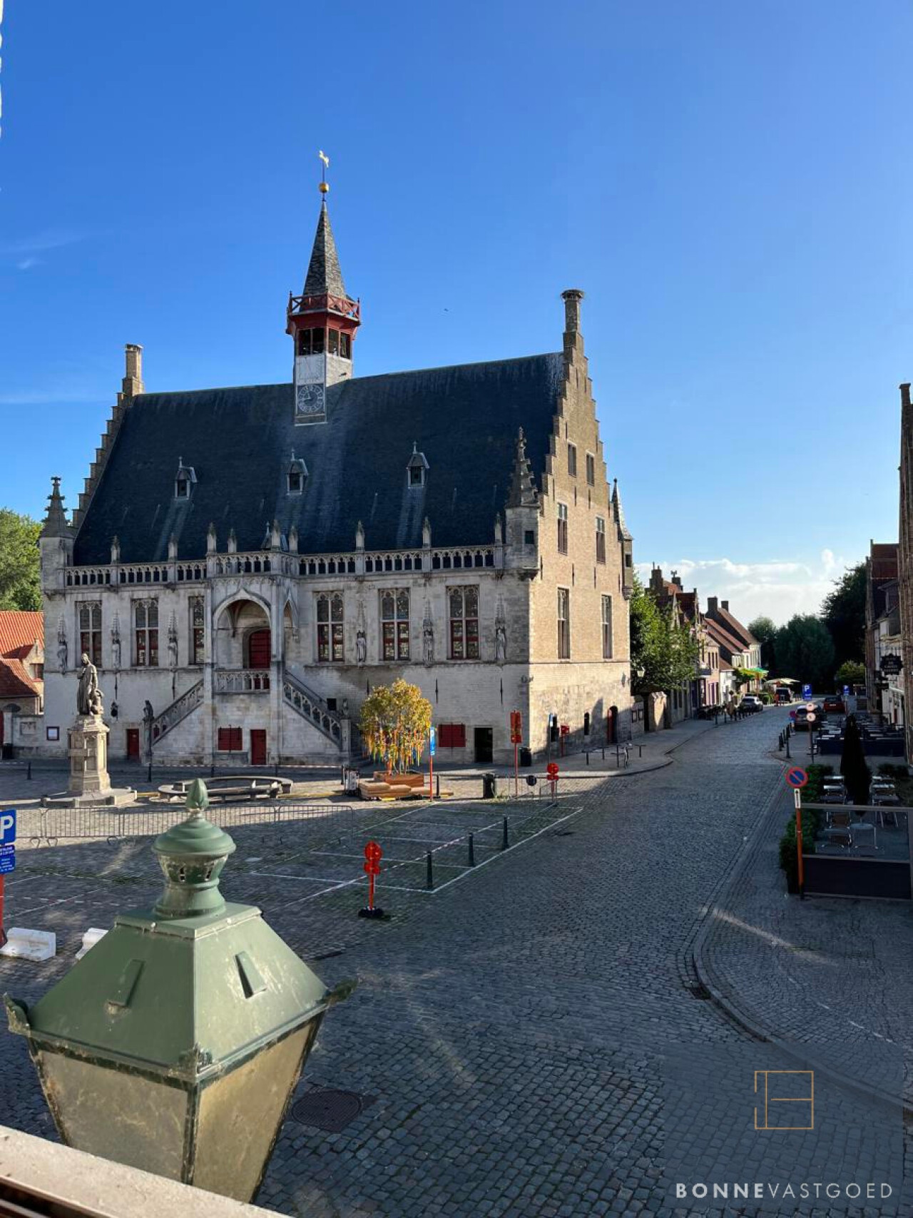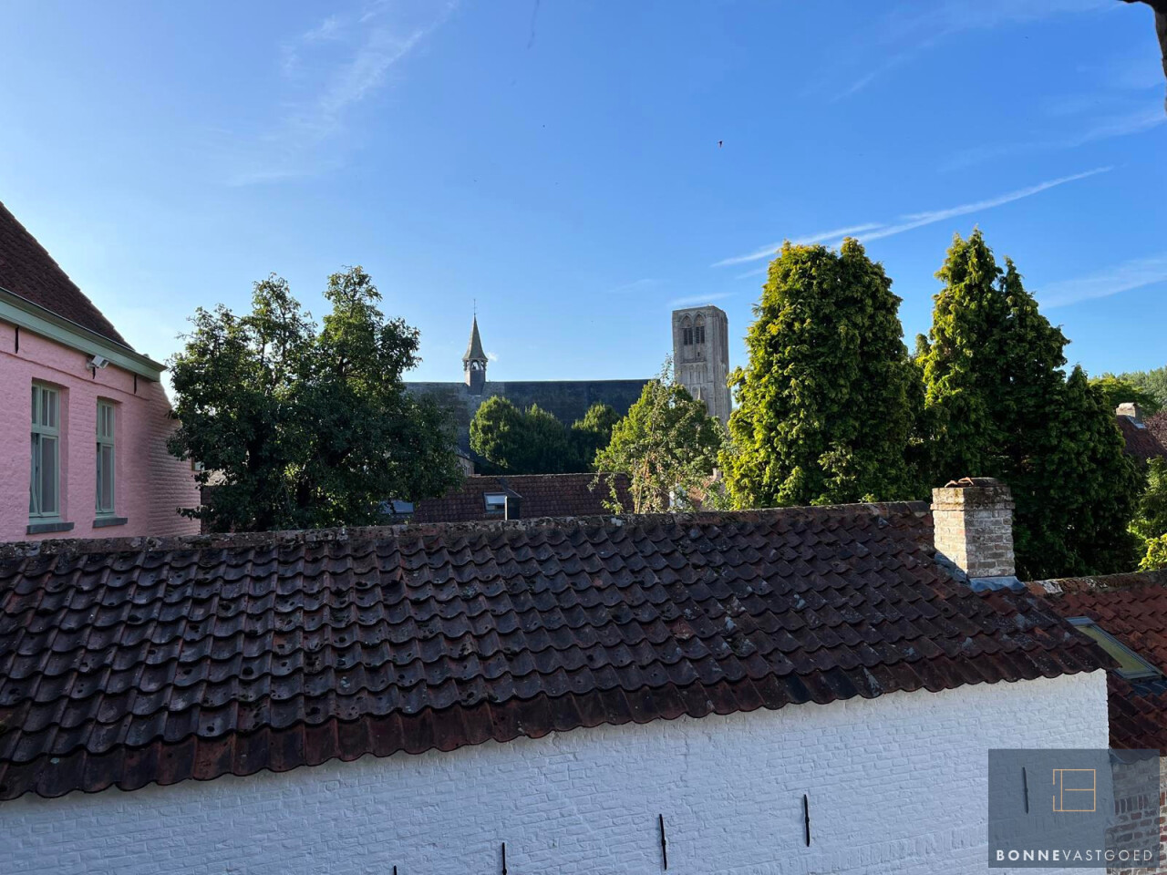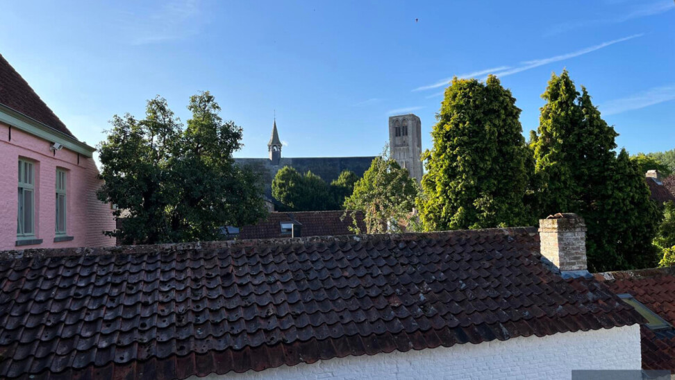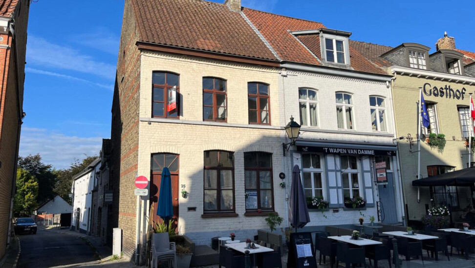 Het pand kon nauwelijks centraler gelegen zijn en biedt u vooraan frontaal zicht op het monumentale stadhuis van Damme en opzij naar de kerk.