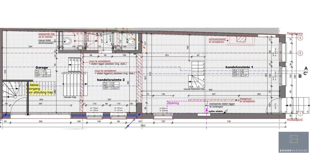 Het pand werd reeds gestript en is direct klaar voor een koper op zijn/haar wensen uit te voeren. De verschillende open gemaakte ruimtes zorgen ervoor dat het pand kan worden gebruikt voor een COMBINATIE VAN WONEN op de verdiepingen EN WERKEN op het gelijkvloers. Voor dergelijke werkzaamheden zijn reeds hapklare BOUWPLANNEN VOOR HANDEN! Tevens kan het ook volledig als woning worden gebruikt.
