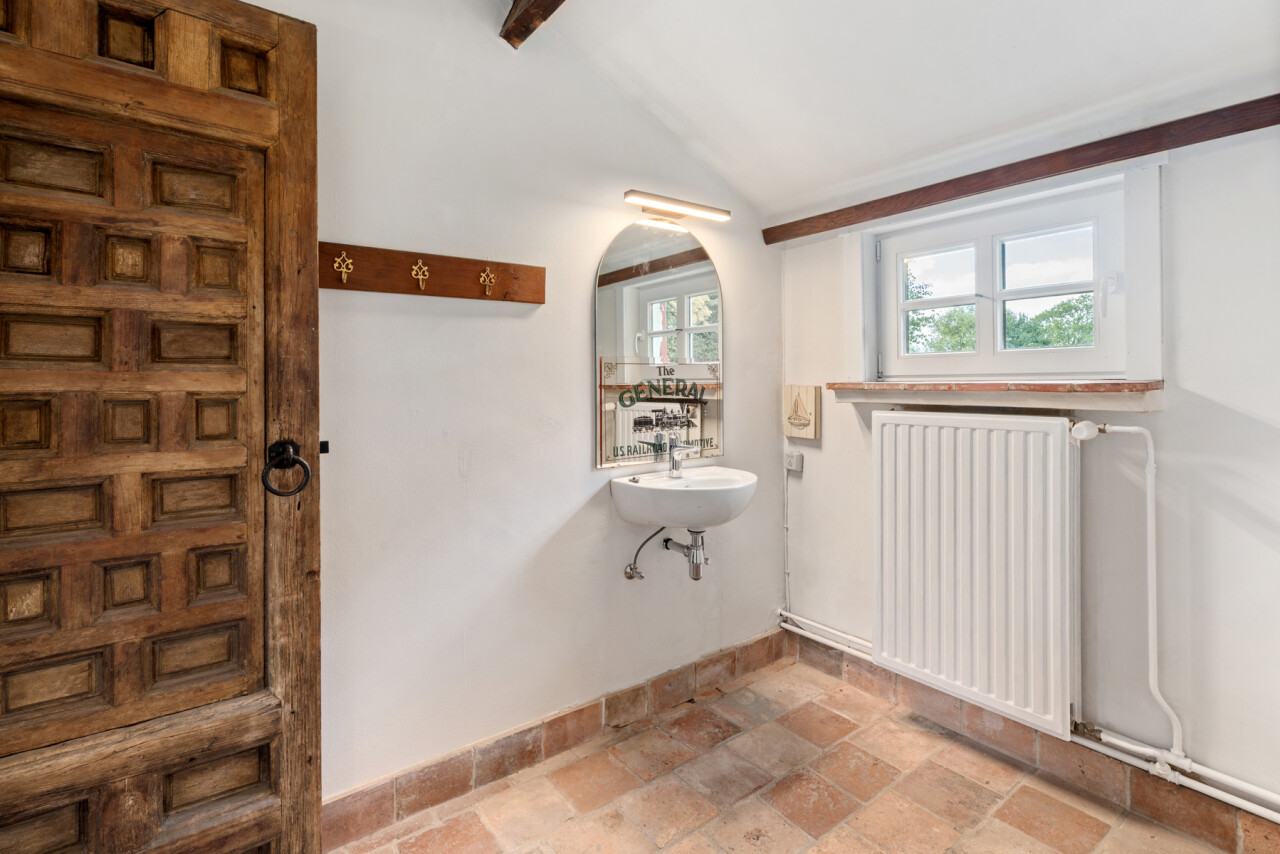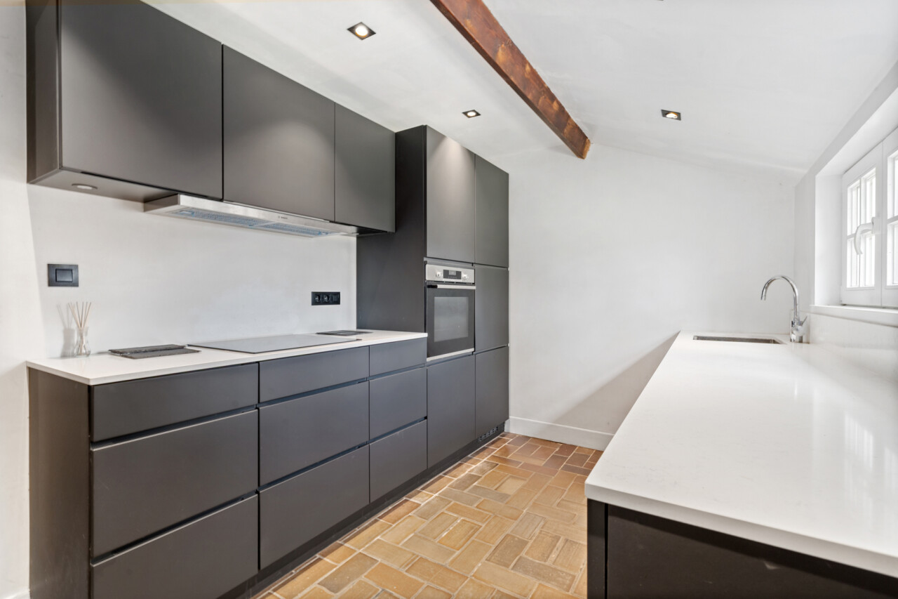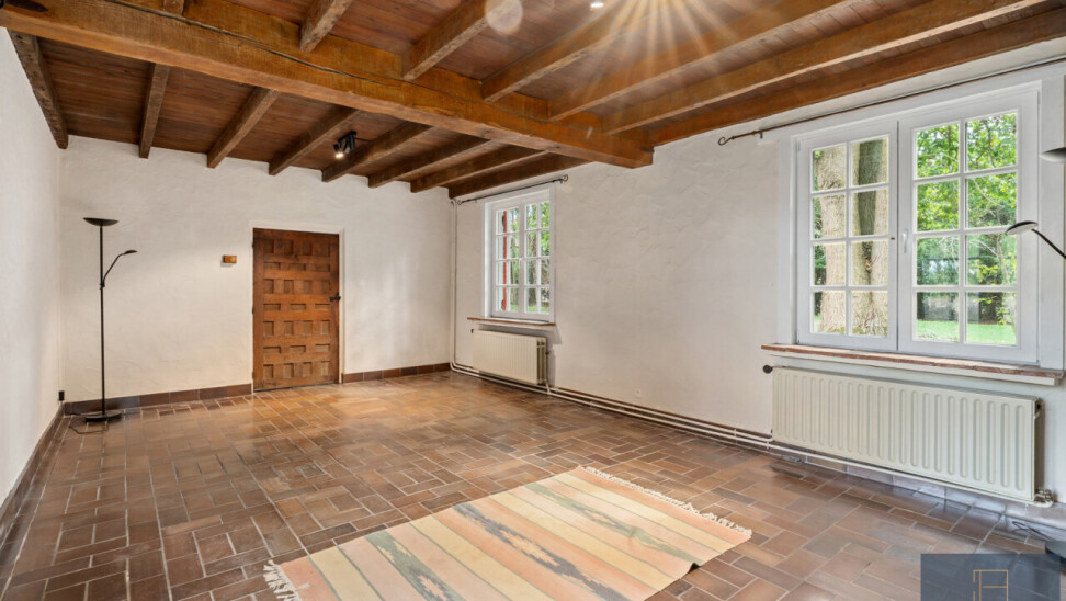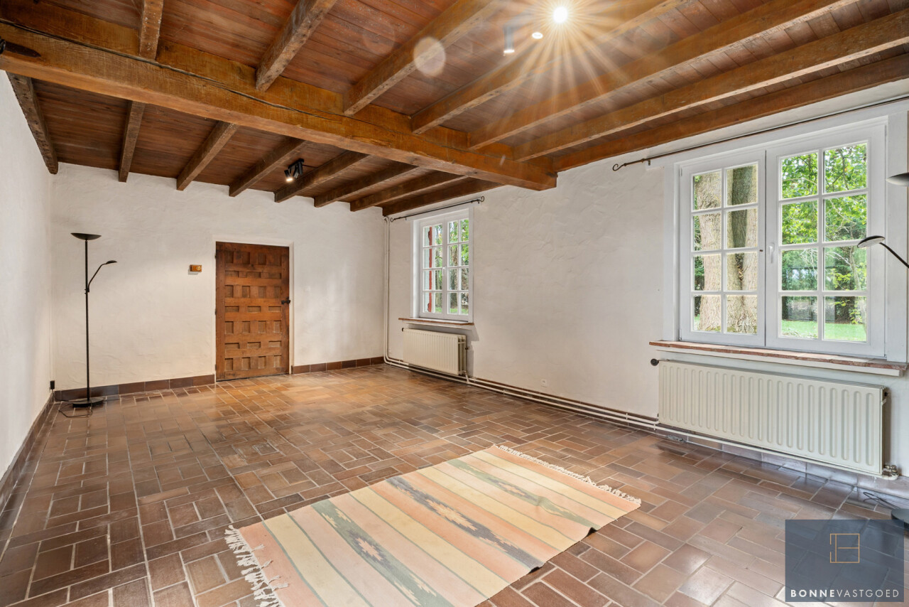 De woning wordt getypeerd door z’n charme-elementen: eiken balkwerk, volhouten deuren,… werd doorheen de jaren gerenoveerd met nieuw dak en werd onlangs nog voorzien van een nieuwe keuken, nieuwe douchekamer, gemoderniseerde badkamer, …