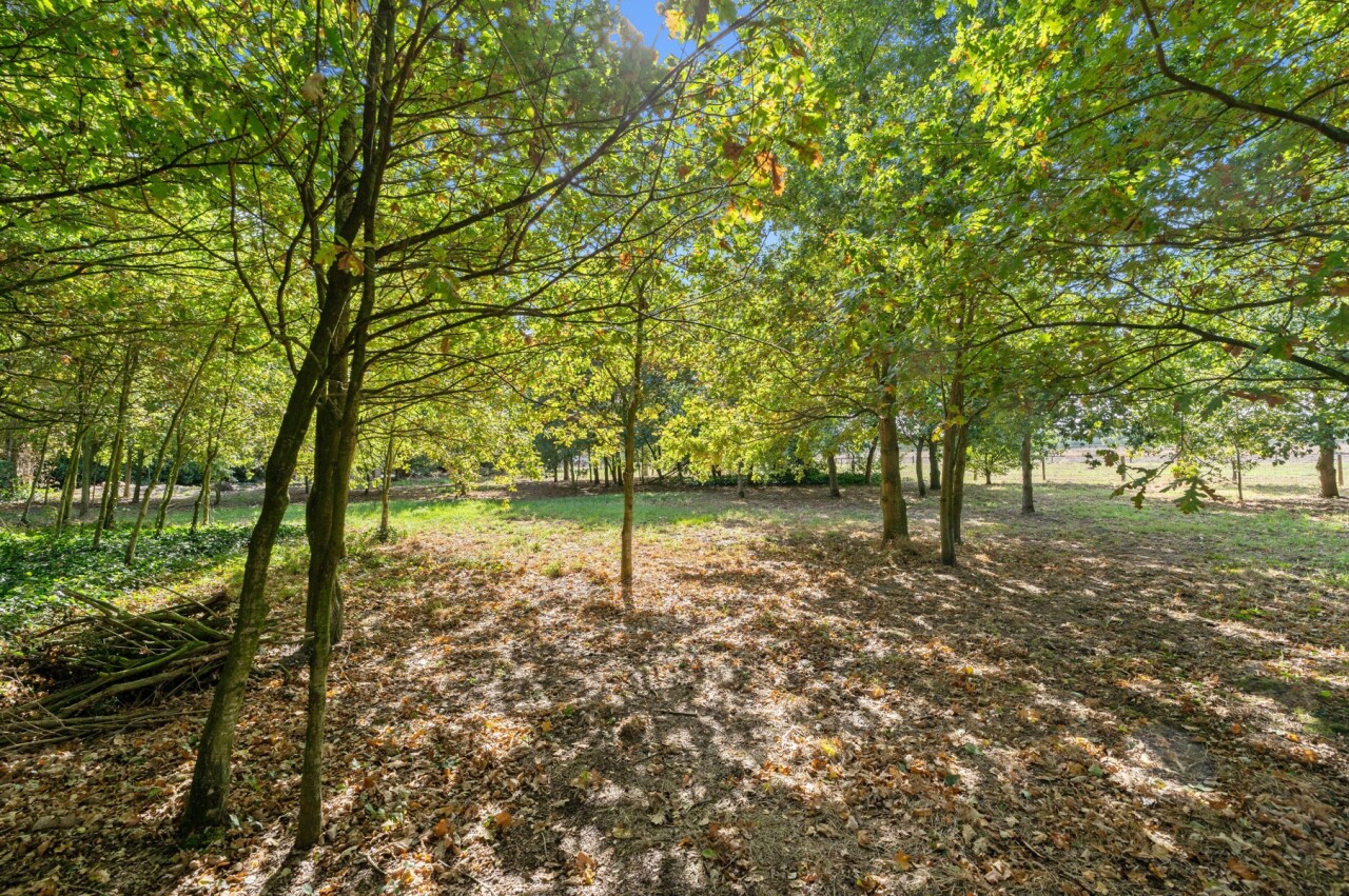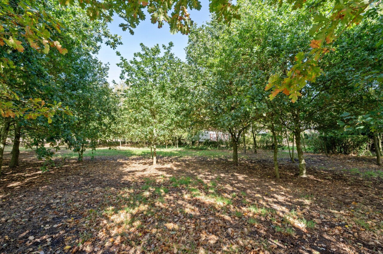 Buiten: oprit, voor-, zij- en achtertuin, terras en privaat bos. De mogelijkheid bestaat om extra landbouwgrond aan te kopen die paalt aan de achtertuin.