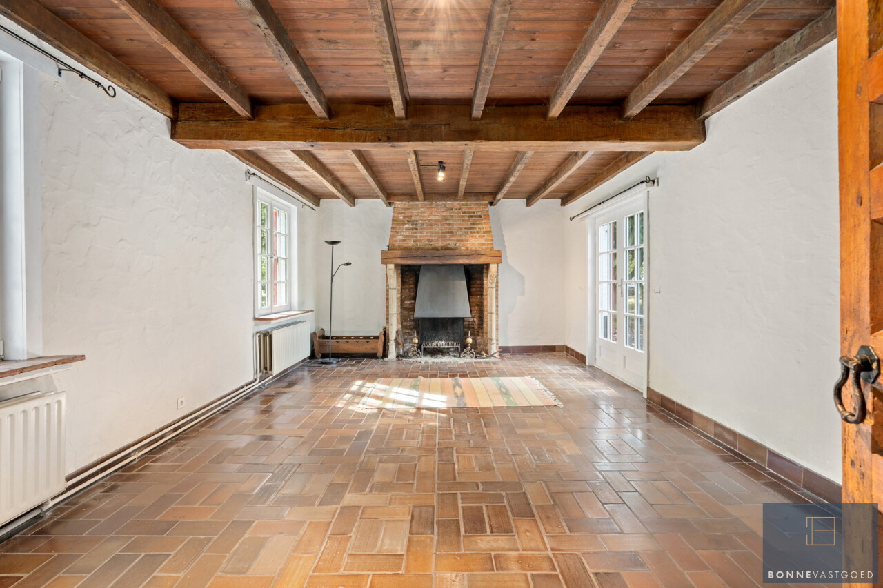 De woning wordt getypeerd door z’n charme-elementen: eiken balkwerk, volhouten deuren,… werd doorheen de jaren gerenoveerd met nieuw dak en werd onlangs nog voorzien van een nieuwe keuken, nieuwe douchekamer, gemoderniseerde badkamer, …