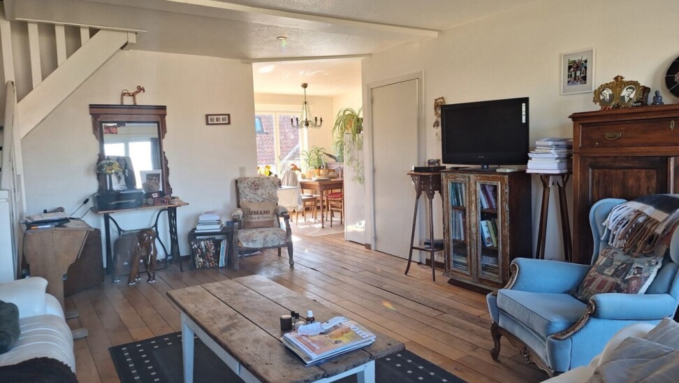 Via de private traphal komt u op de woonverdieping met lichtrijke leefruimte met zithoek (Prachtig zicht op de Damse Vaart) en eetplaats, berging, uitgeruste keuken, zongericht terras met zicht over het centrum van Damme naar de kerktoren. Slaapverdieping: badkamer met ligbad, lavabo en toilet. Verder zijn er 3 slaapkamers en een geïsoleerde bergzolder.