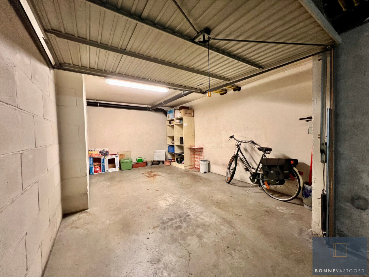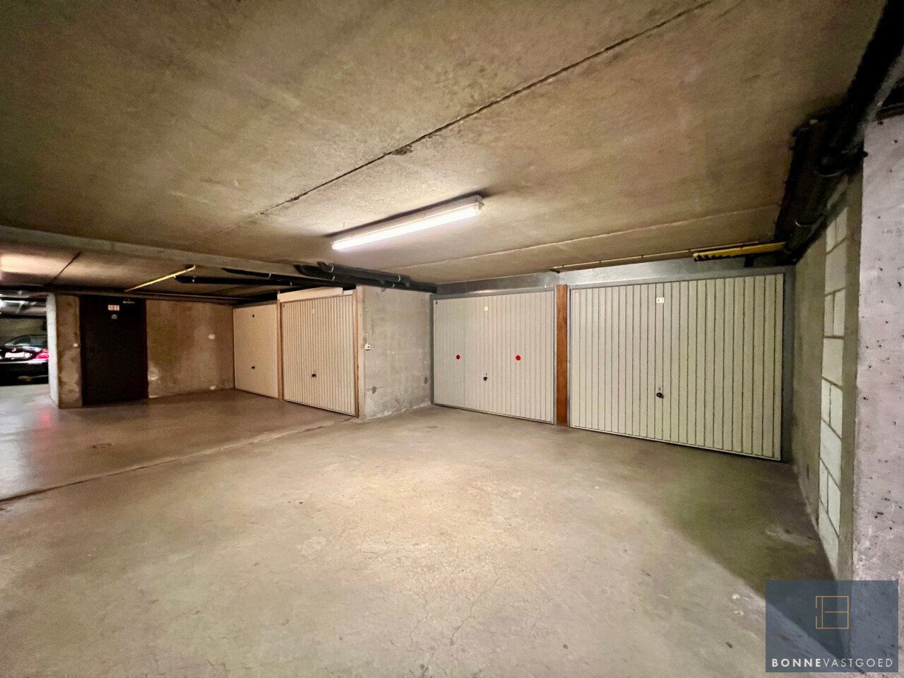 De garage is voorzien van verlichting en een stopcontact (niet geschikt voor het opladen van elektrische wagens). Bovendien geniet je van een uitstekende bereikbaarheid met voldoende manoeuvreerruimte én een in- en uitrit langs beide zijden van het gebouw.