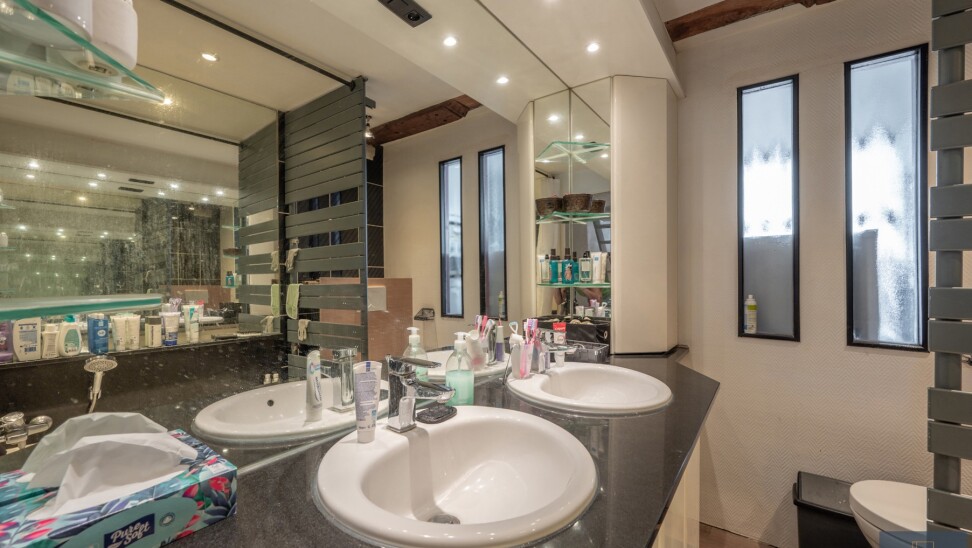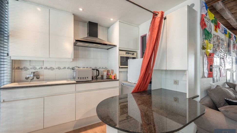 Eerste verdieping: tweede leefruimte met tweede keuken en tweede badkamer (momenteel gebruikt als studio voor een van de kinderen), slaapkamer 3 met toilet en douche.