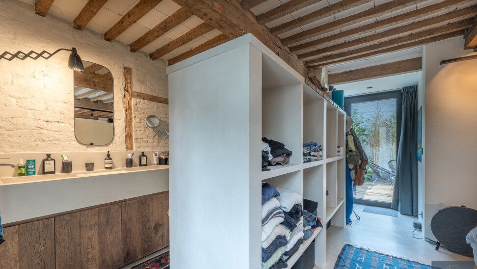 Daarnaast wordt het pand gekenmerkt door z’n authentieke deuren, balkwerk aan de plafonds, plafondhoogte, zichtbare dakgebintes,… . Dit alles werd behandeld tegen houtworm.