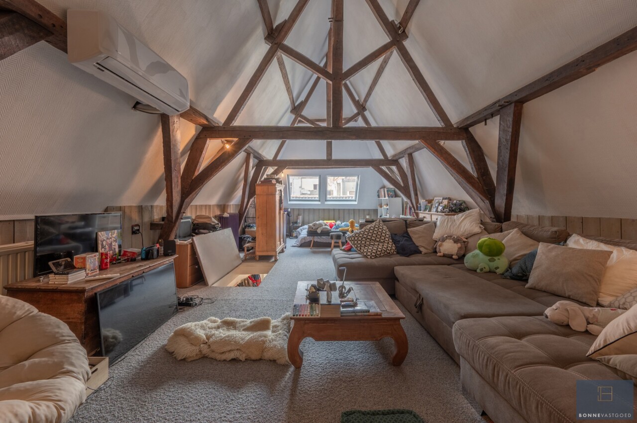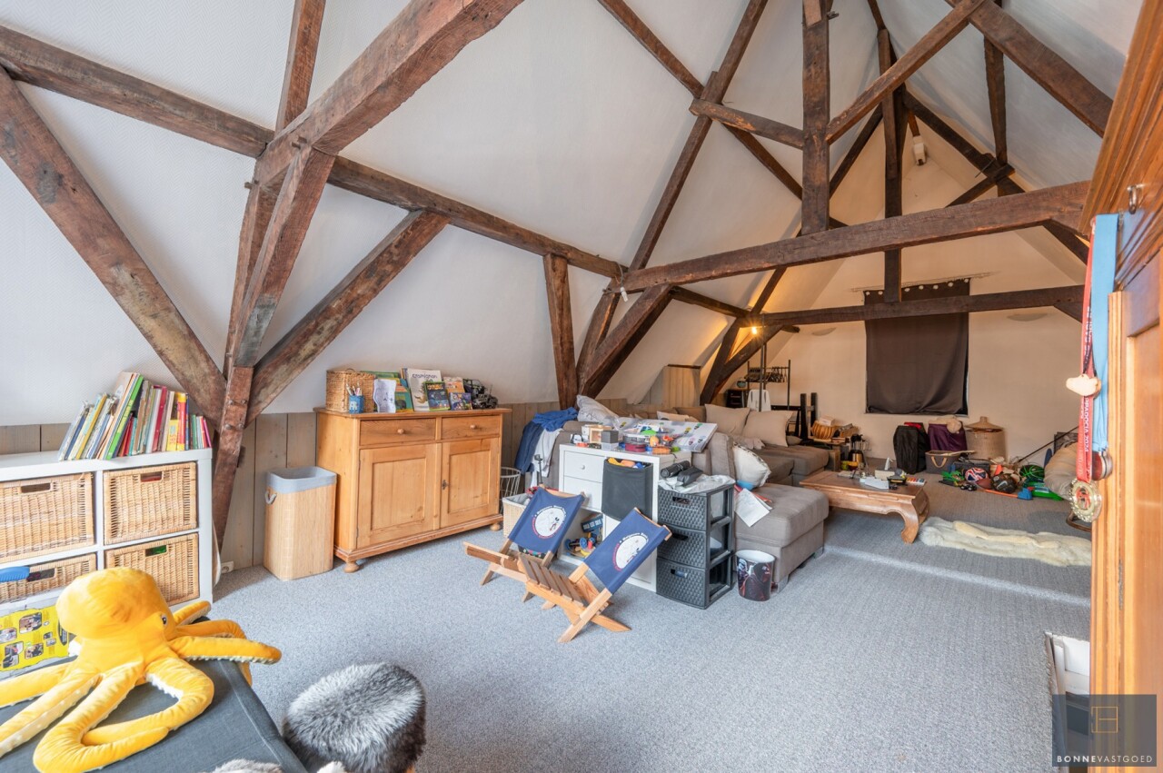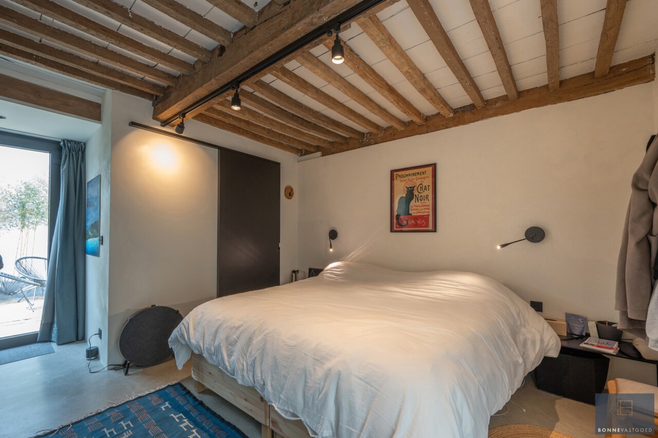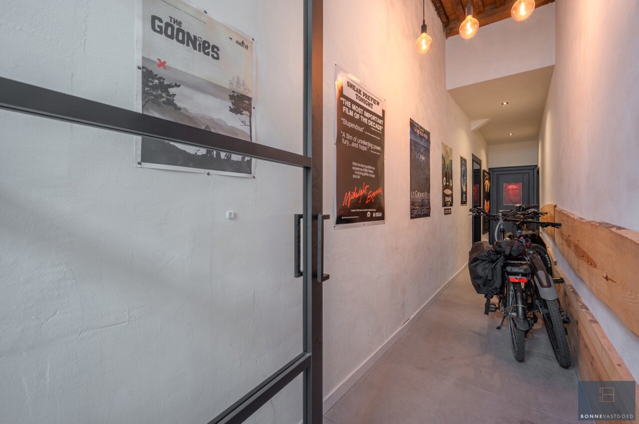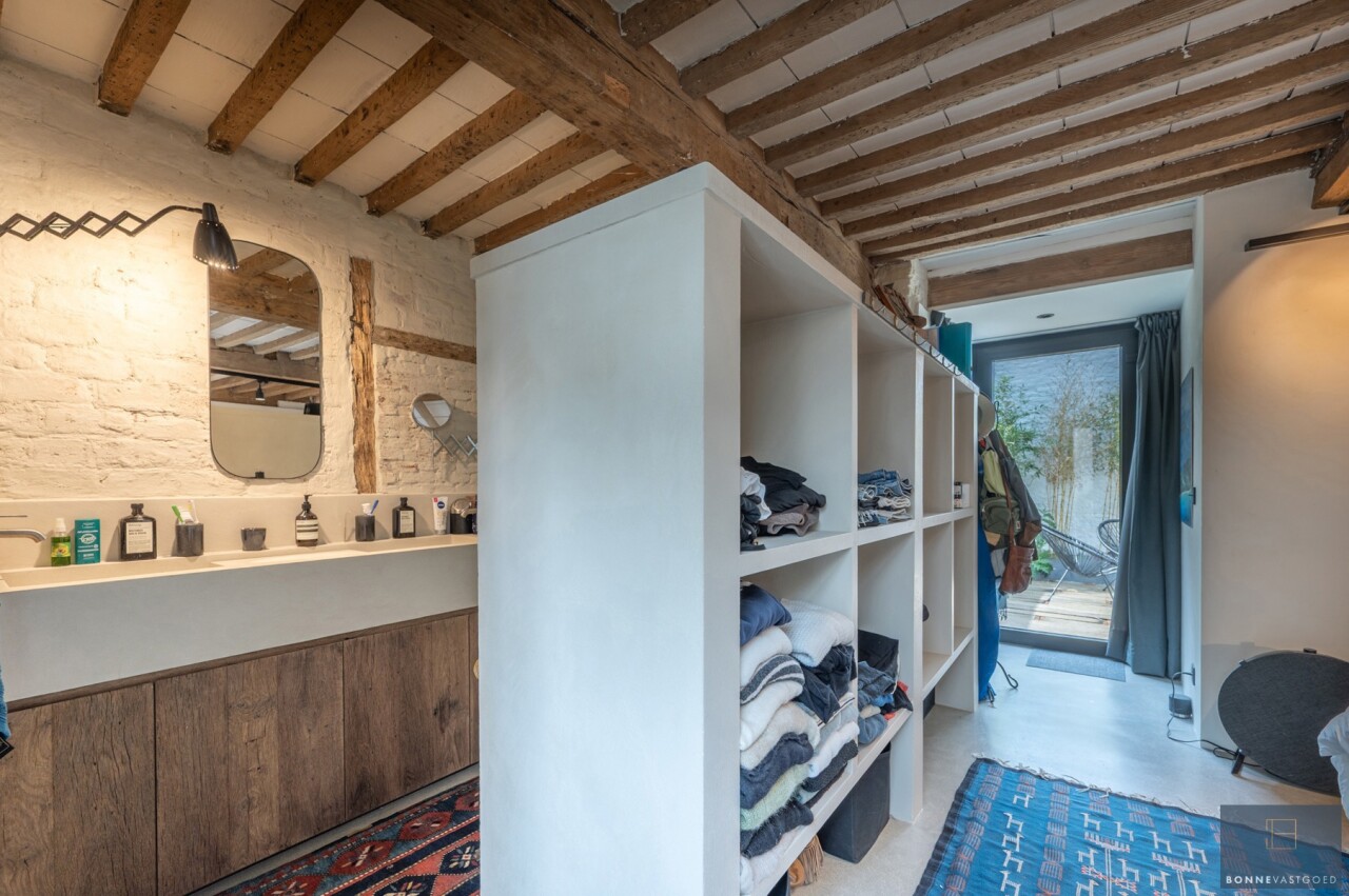 Daarnaast wordt het pand gekenmerkt door z’n authentieke deuren, balkwerk aan de plafonds, plafondhoogte, zichtbare dakgebintes,… . Dit alles werd behandeld tegen houtworm.