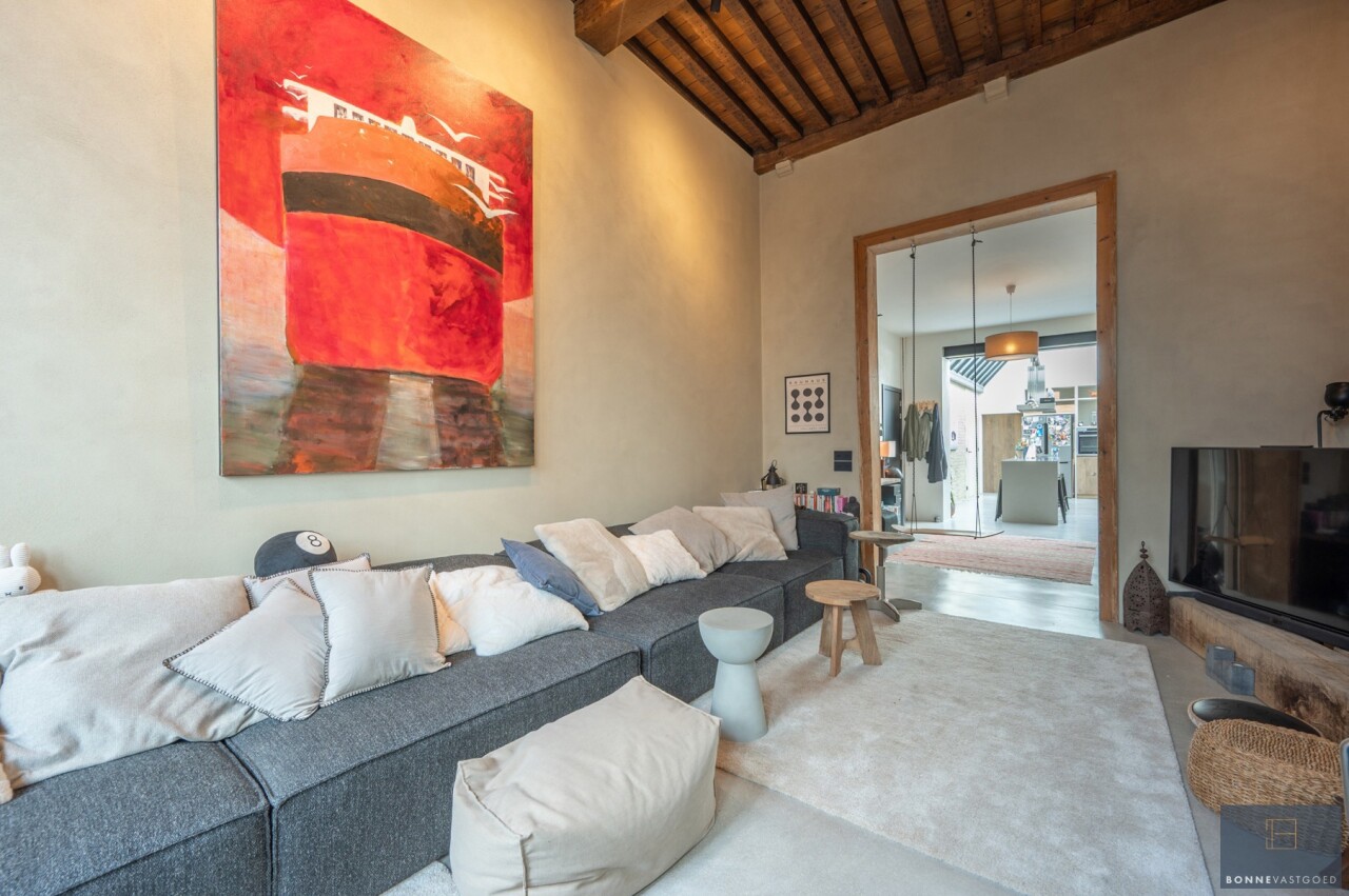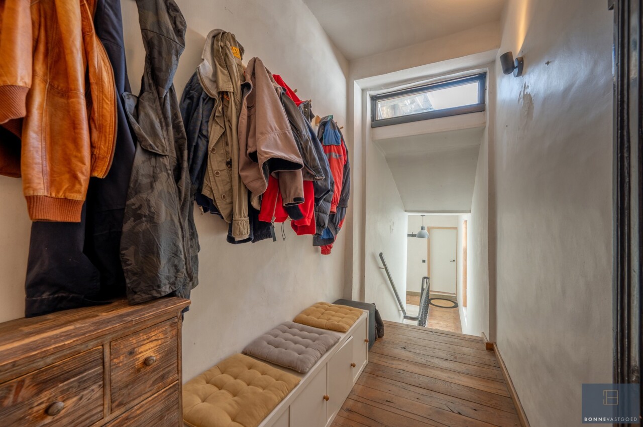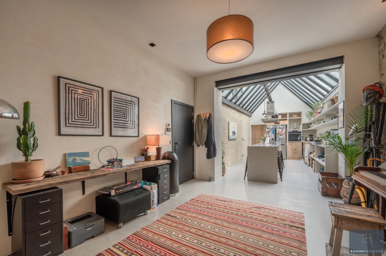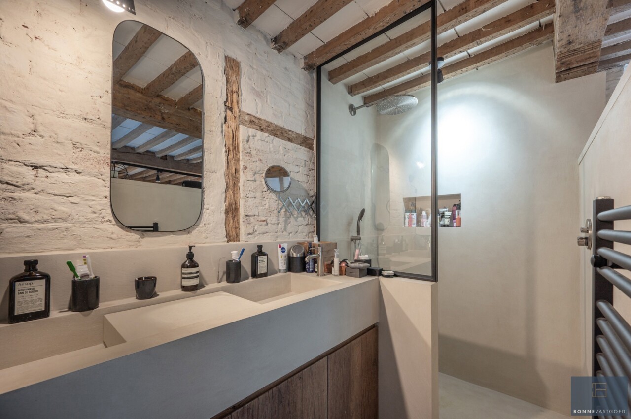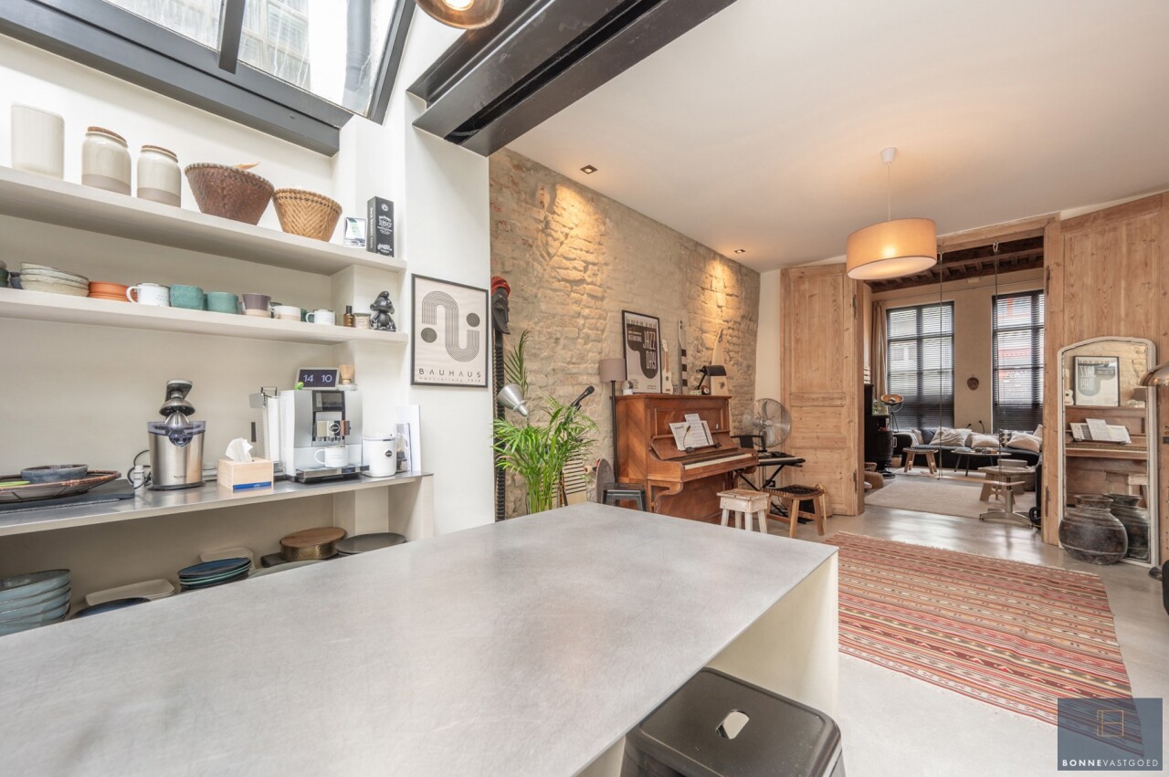 Daarnaast wordt het pand gekenmerkt door z’n authentieke deuren, balkwerk aan de plafonds, plafondhoogte, zichtbare dakgebintes,… . Dit alles werd behandeld tegen houtworm.