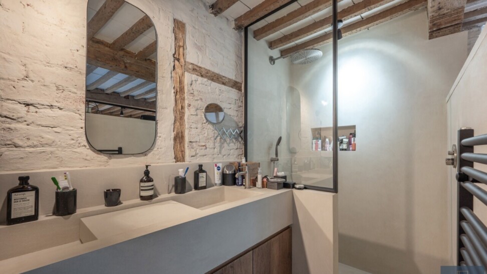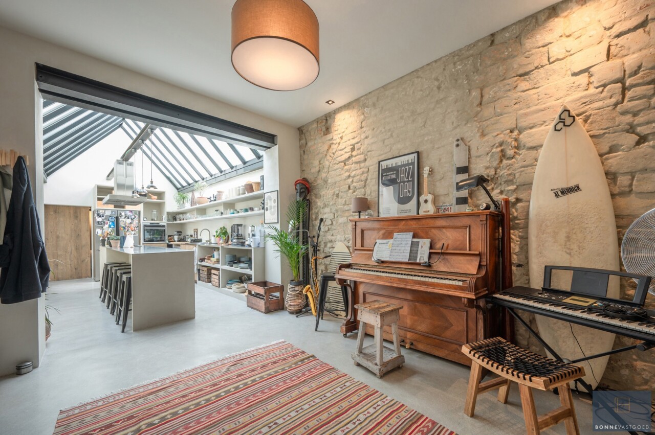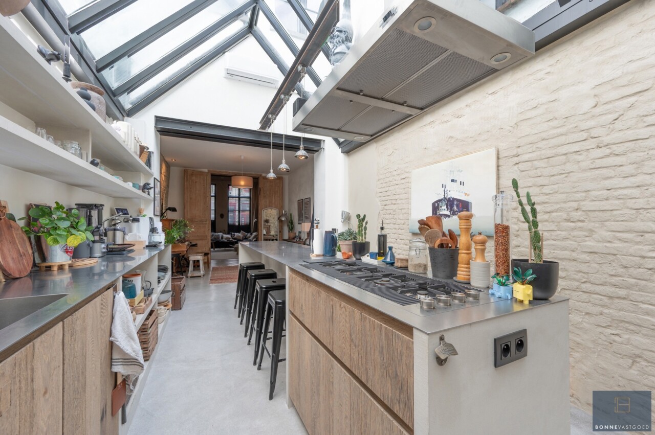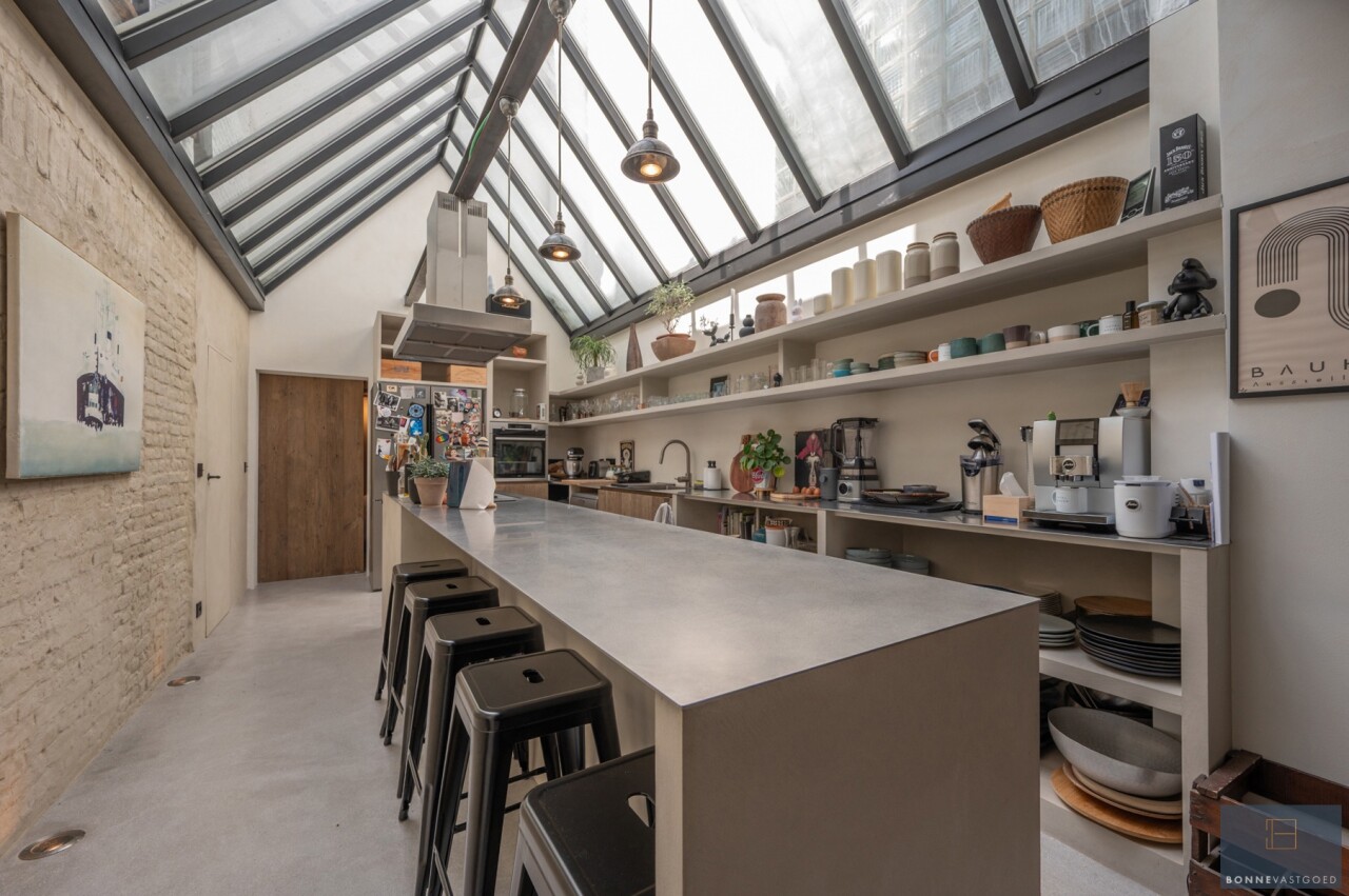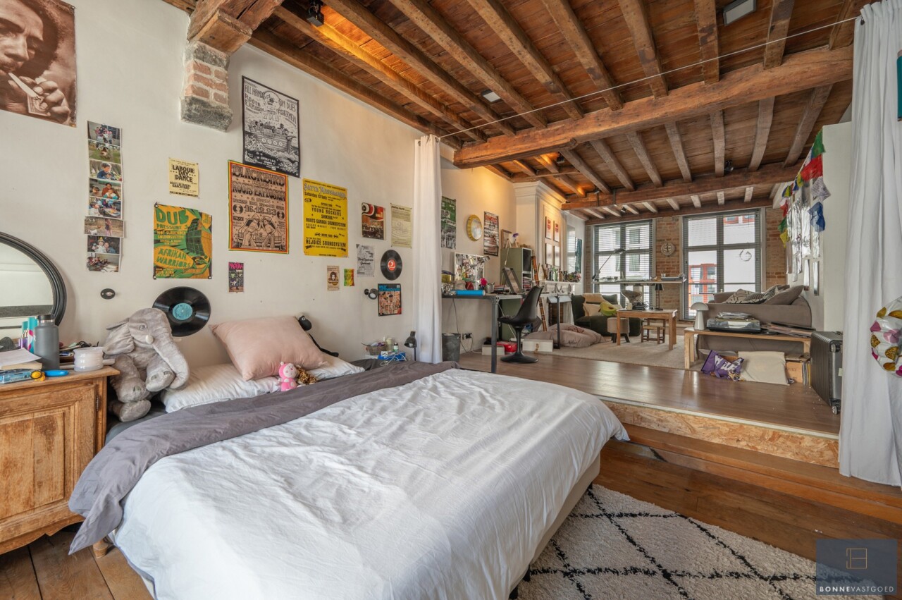 Daarnaast wordt het pand gekenmerkt door z’n authentieke deuren, balkwerk aan de plafonds, plafondhoogte, zichtbare dakgebintes,… . Dit alles werd behandeld tegen houtworm.