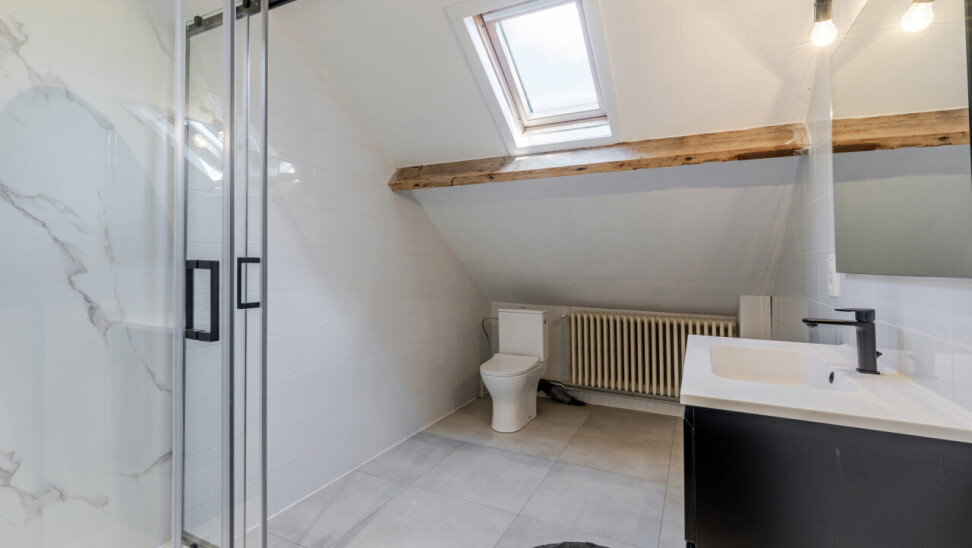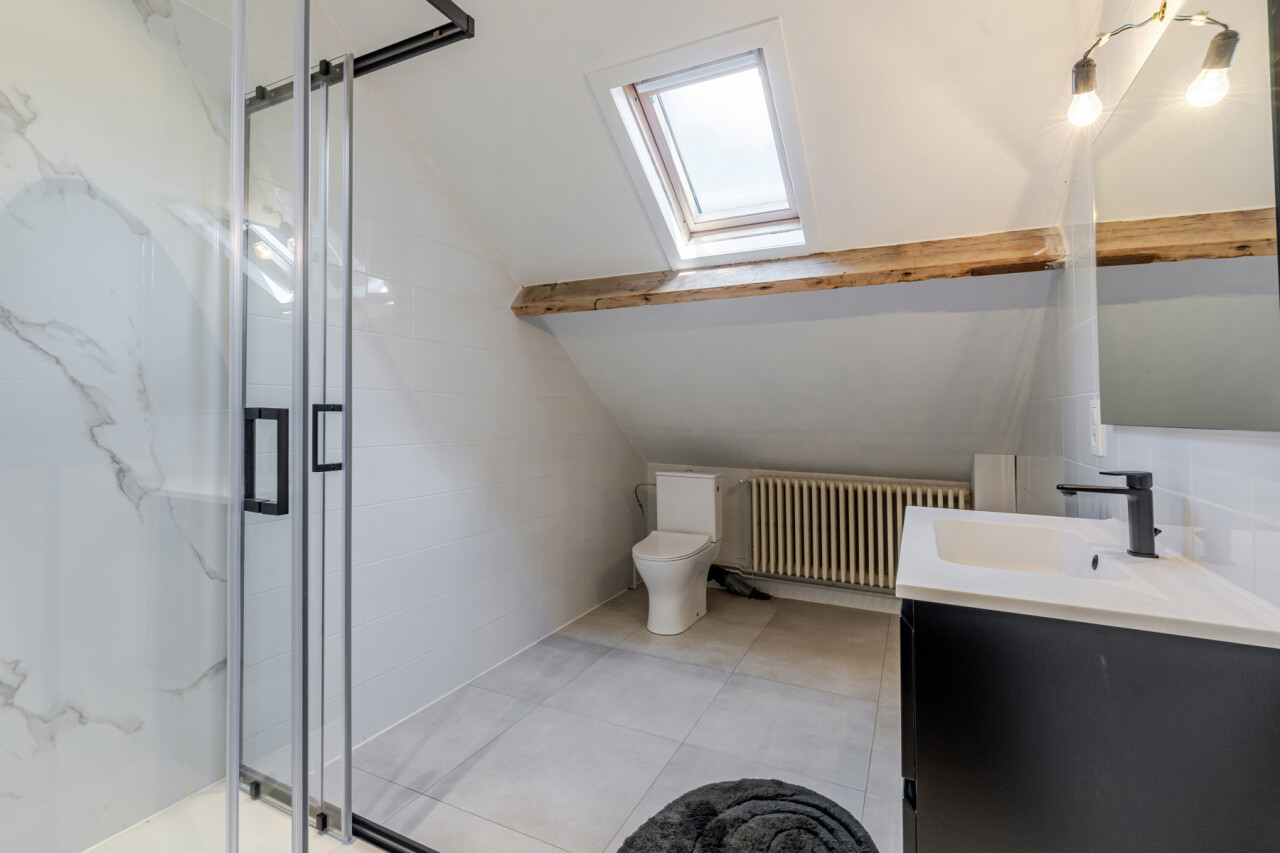 Op de eerst verdieping vinden we: een badkamer, slaapkamer en polyvelante zolder die opdeelbaar is in 2 a 3 slaapkamers. Zowel het dak als de zoldervloer werden recent geïsoleerd.