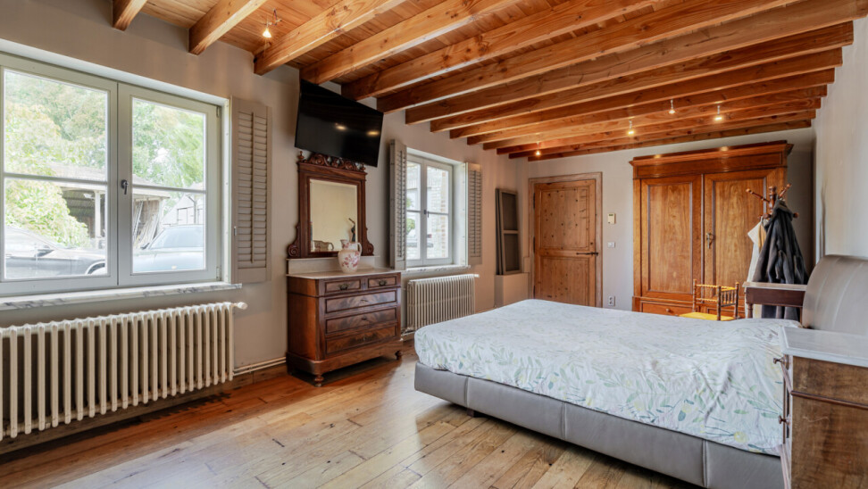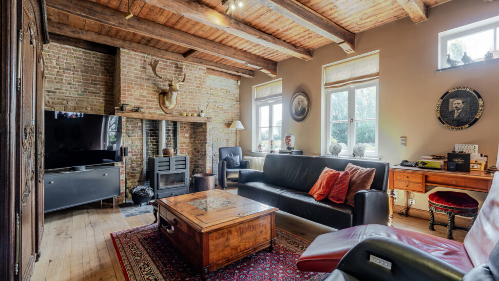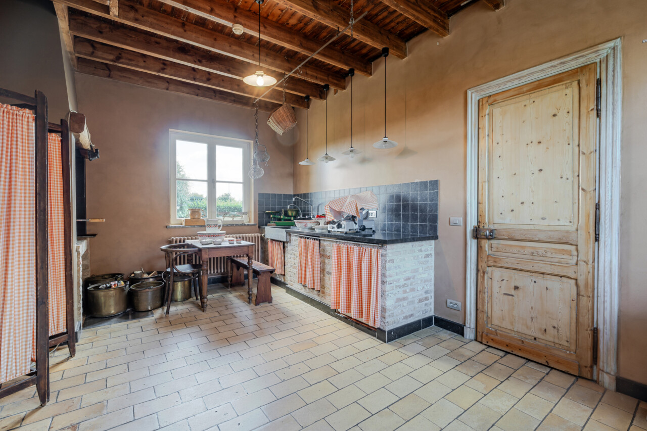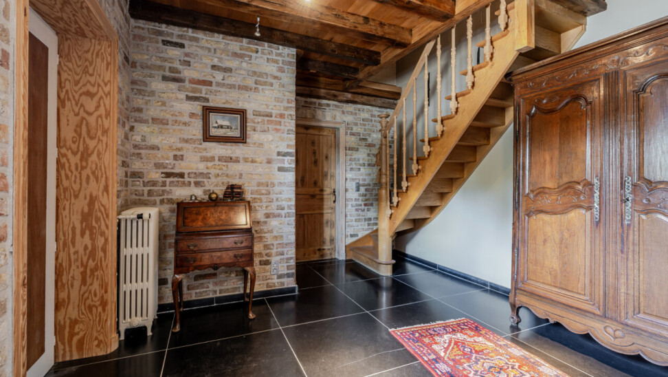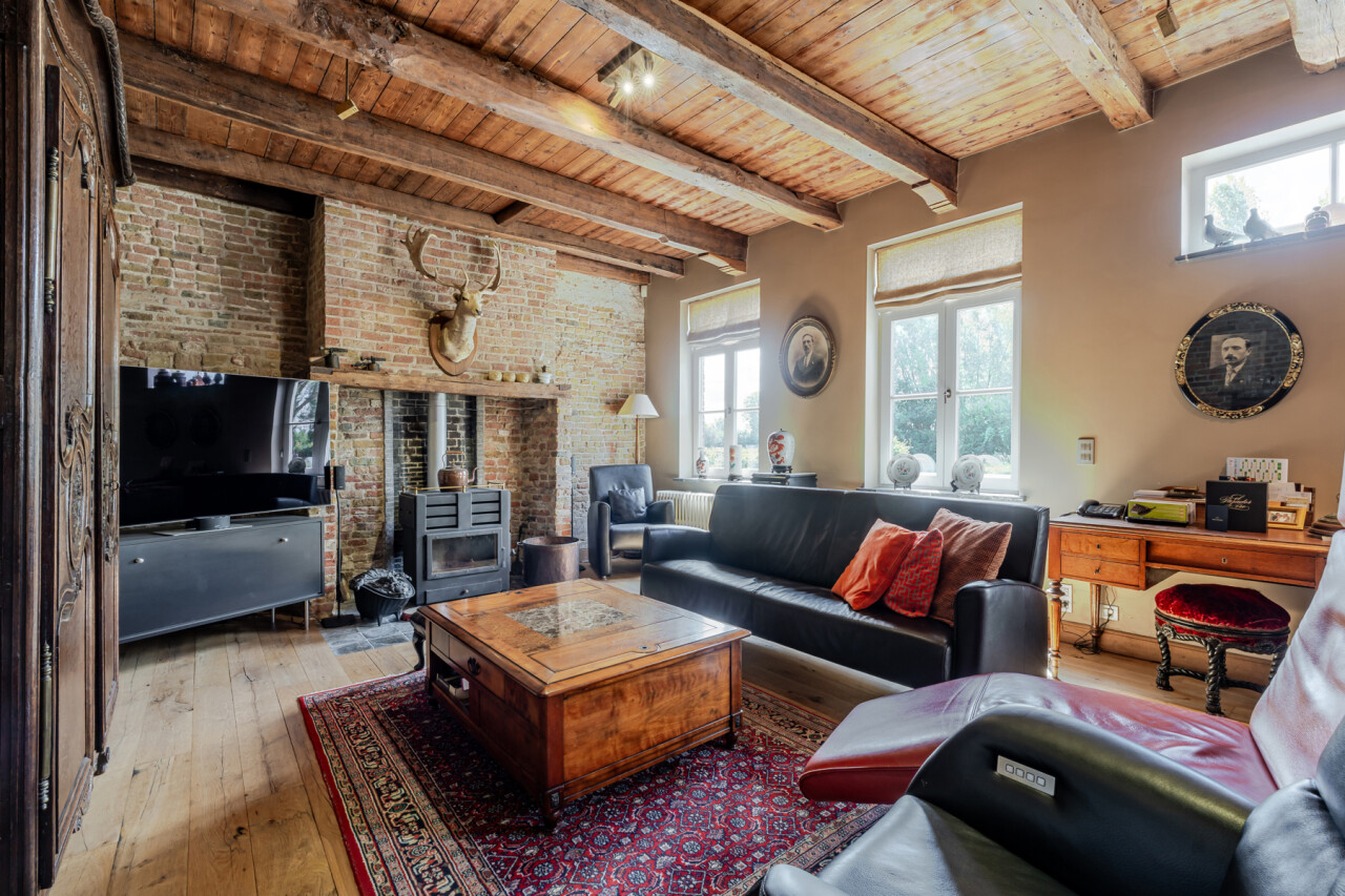 Deze prachtige hoeve dateert uit de late 18de eeuw en werd de voorbije 15 jaar totaal gerenoveerd met behoud van z’n karakterelementen zoals de antieke balkenplafonds, deuren, … . Het domein is langs 2 toegangen te bereiken.