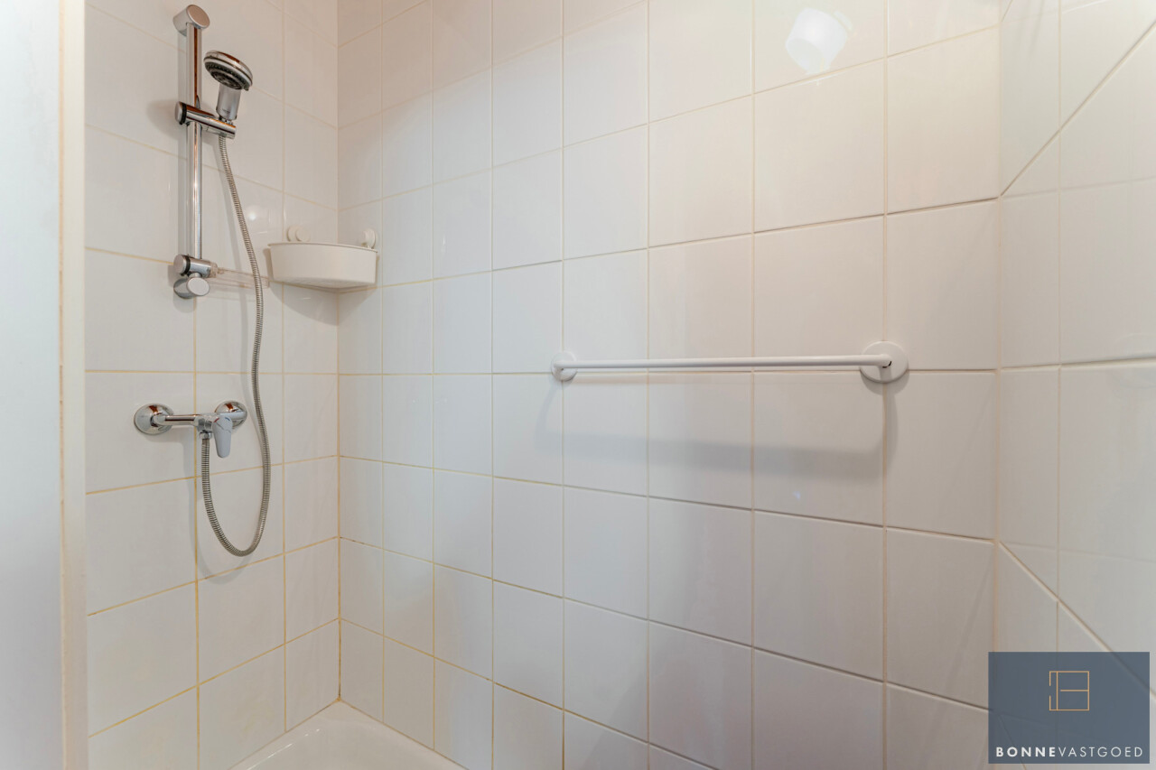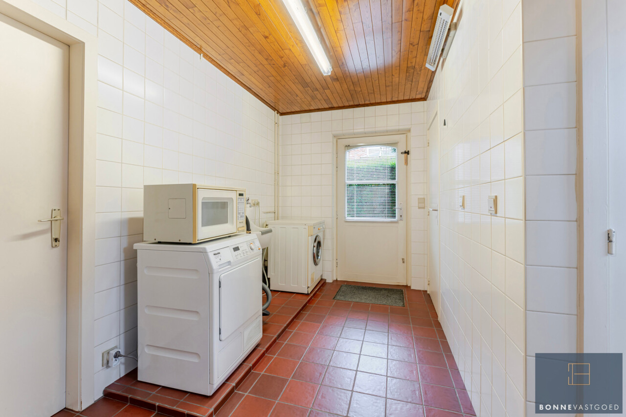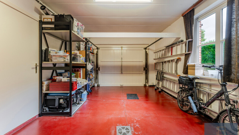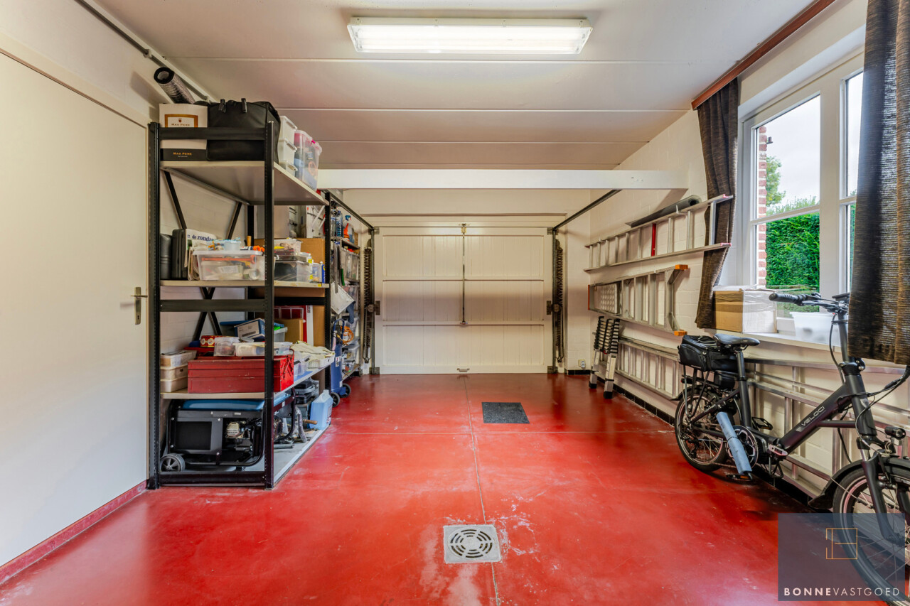 Gelijkvloers: inkomhal – ruime woonkamer met zithoek en eetplaats – neutrale kwaliteitskeuken met vernieuwde toestellen – berging – doucheruimte – garage.