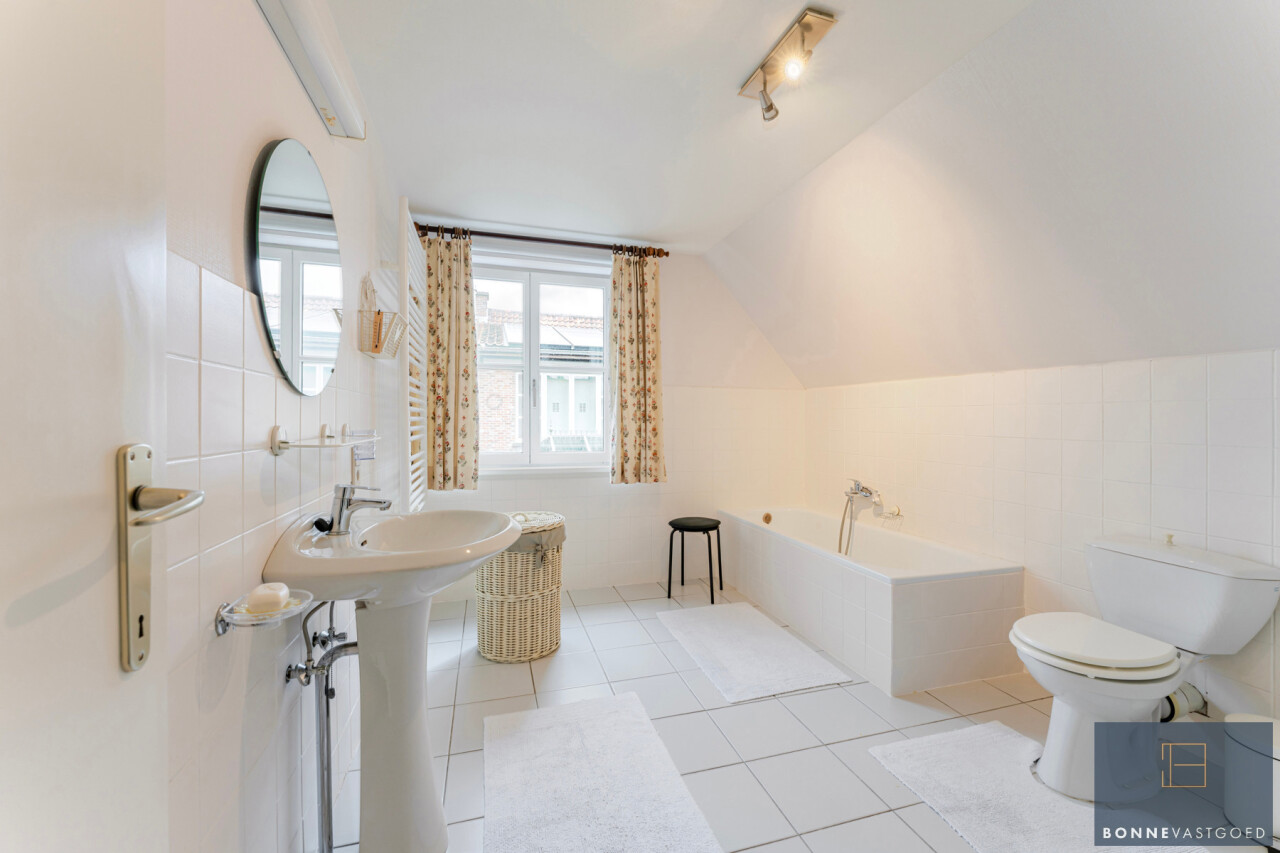 Eerste verdieping: 4 slaapkamers – grote badkamer voorzien van ligbad, toilet en lavabomeubel.