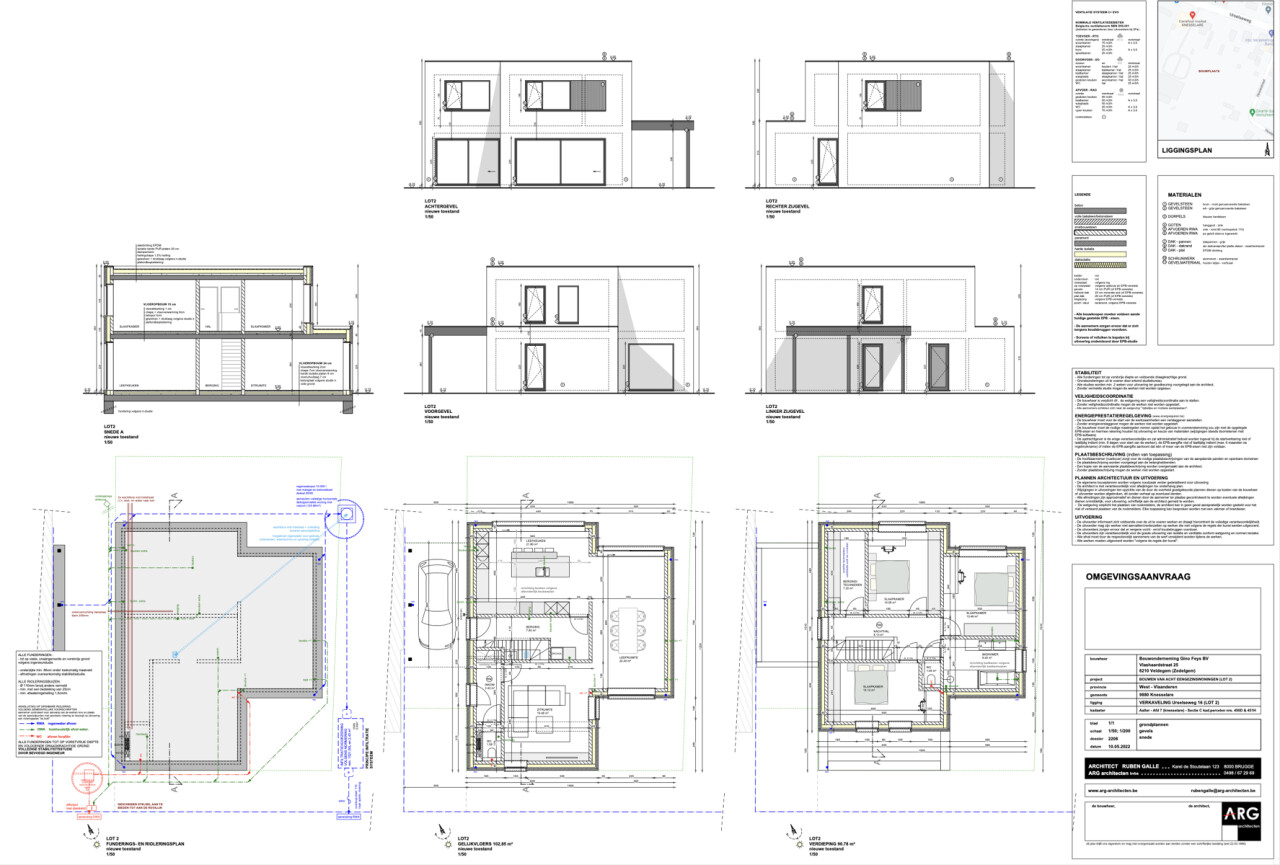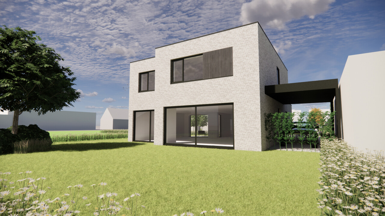 Richtprijs van deze moderne open bebouwing op lot 2 € 542.211,00 inclusief BTW, grond, volledig afgewerkt, architect en EPB. Bouwen kan water- en winddicht (incl grond en btw € 424.942,00) gedeeltelijk of volledig afgewerkt.