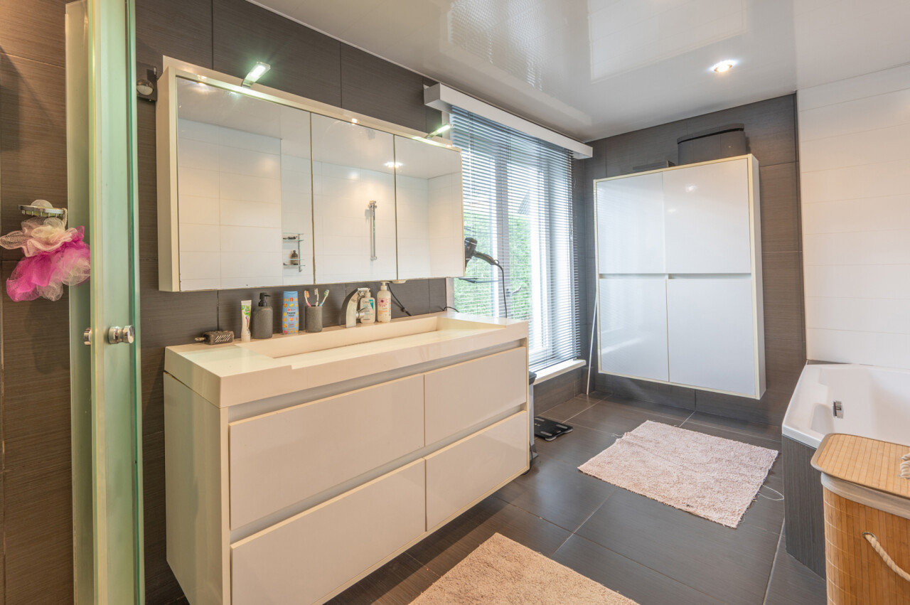Energiezuinigheid: de woning werd in 2024 voorzien van zonnepanelen en in 2025 van een nieuwe Daikin lichtwarmtepomp (verwarming + koeling) en energiezuinige warmwaterboiler van 150.