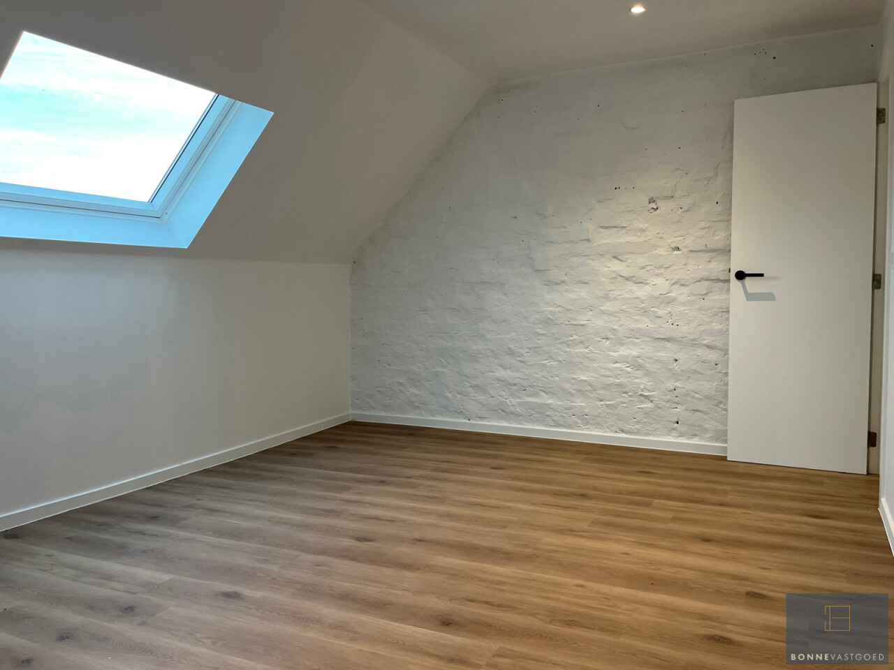 De woning werd gerenoveerd, herbepleisterd en onlangs nog voorzien van nieuwe keuken, nieuwe badkamer, nieuwe trap, nieuwe veluxen,…