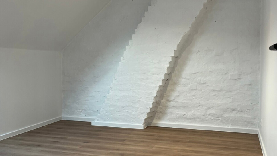 Tweede verdieping: 2 slaapkamers waarvan 1 met aansluitingen voor extra badkamer.