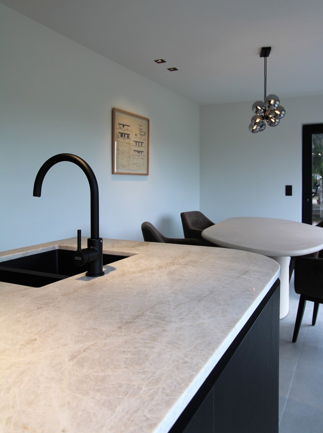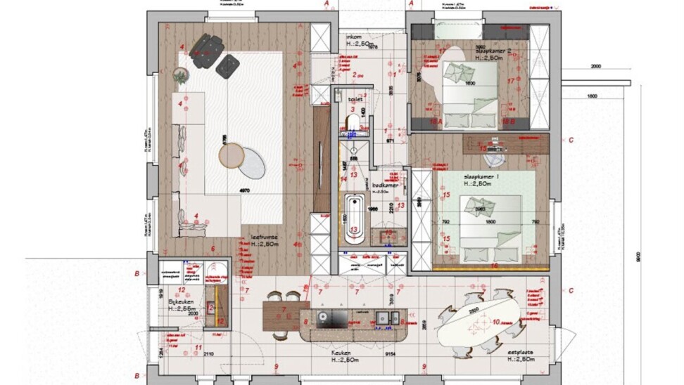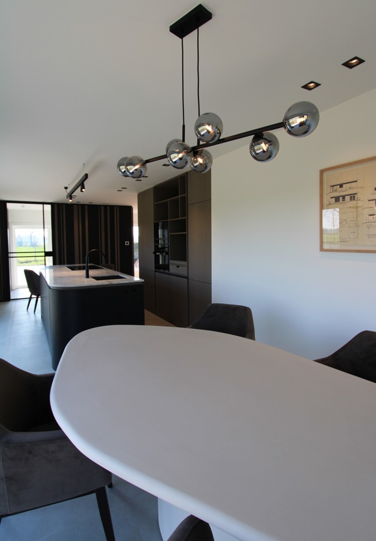 De woning scoort ook bijzonder goed qua energiezuinigheid dankzij z’n Viessmann warmtepomp (verwarming + koeling), zonnepanelen, vloer- muur- en dakisolatie, ventilatie, isolerende beglazing,.. Daarnaast is ook een regenwaterput en wadi voorzien.