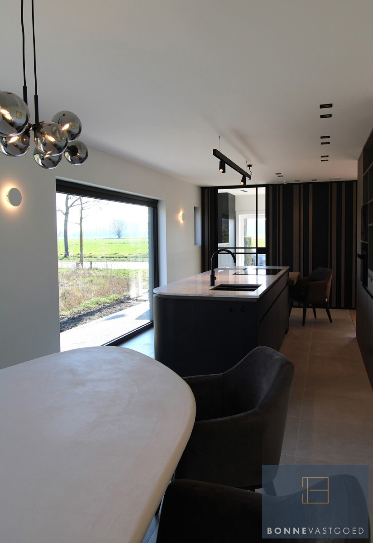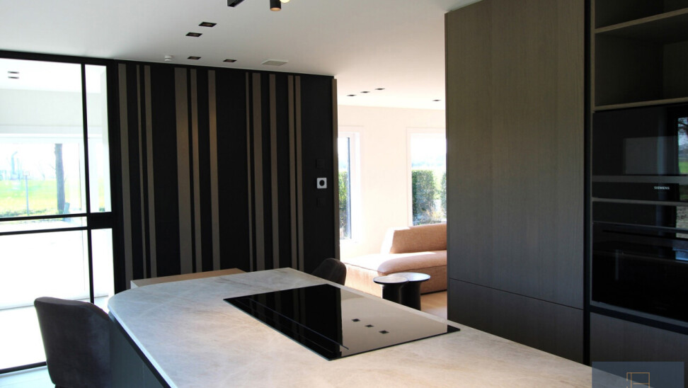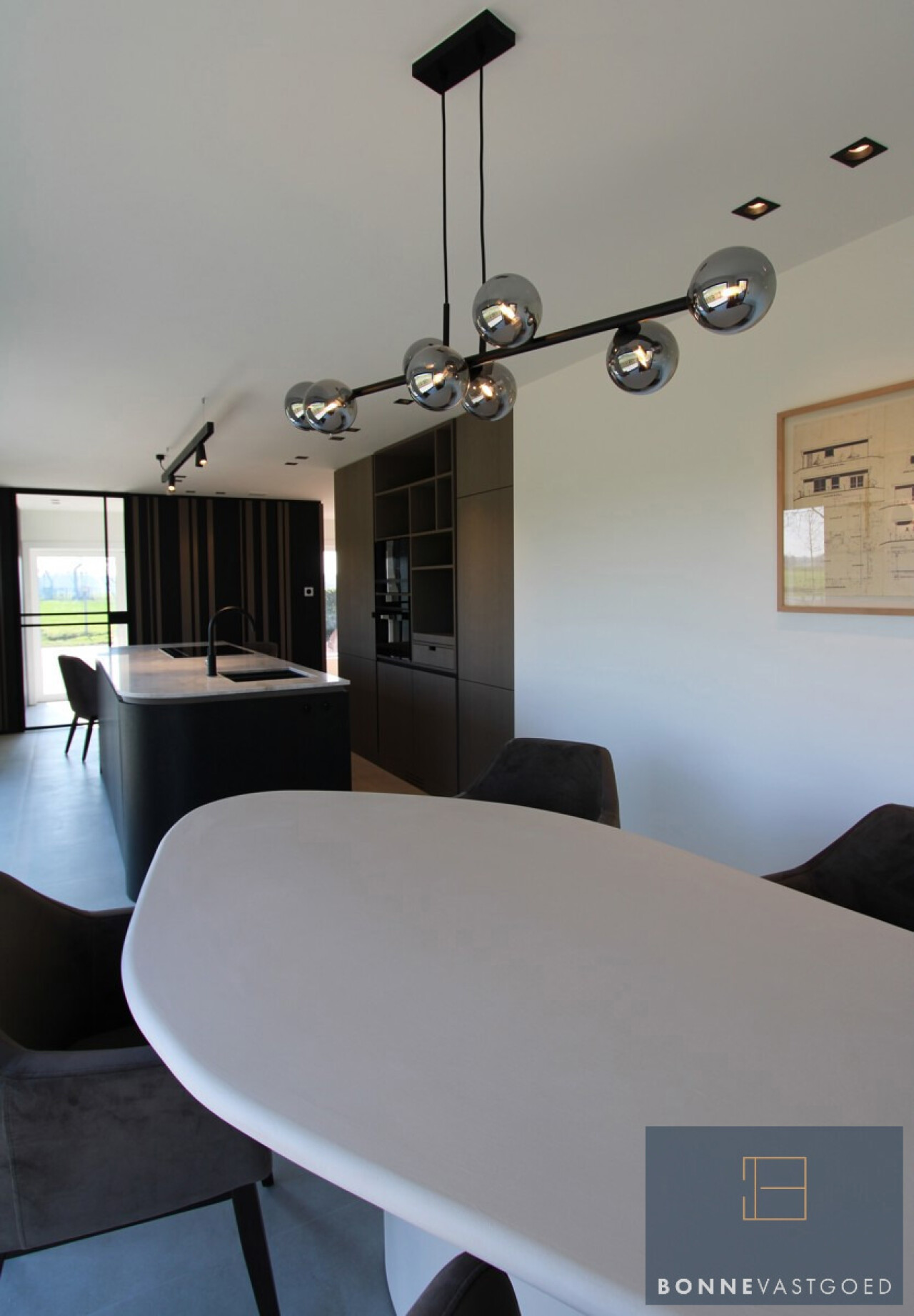 De woning scoort ook bijzonder goed qua energiezuinigheid dankzij z’n Viessmann warmtepomp (verwarming + koeling), zonnepanelen, vloer- muur- en dakisolatie, ventilatie, isolerende beglazing,.. Daarnaast is ook een regenwaterput en wadi voorzien.
