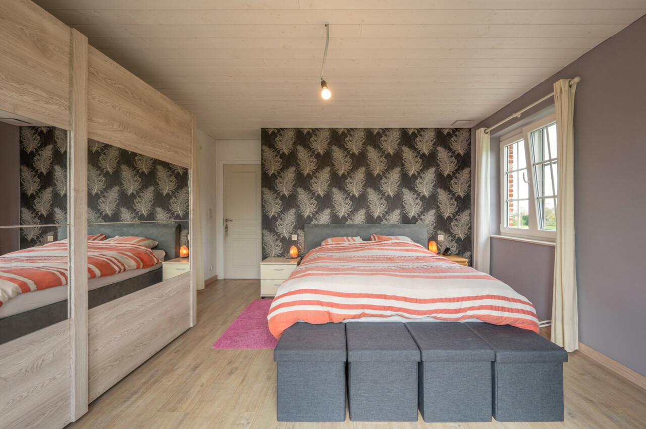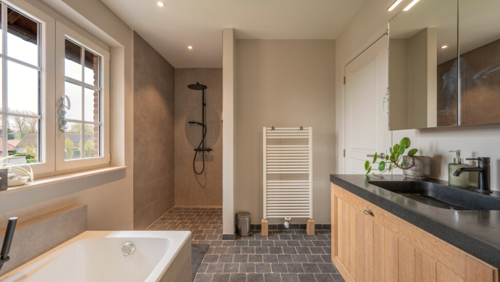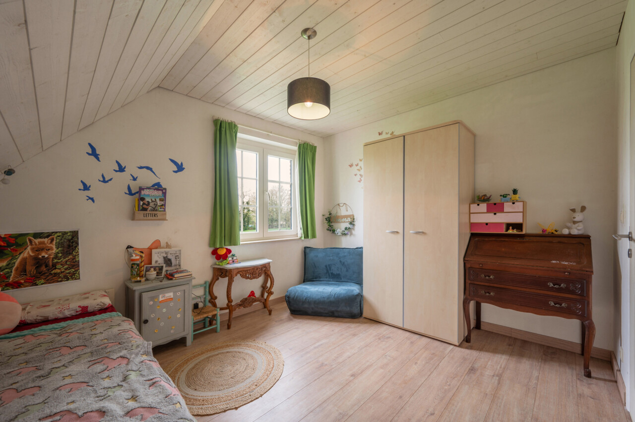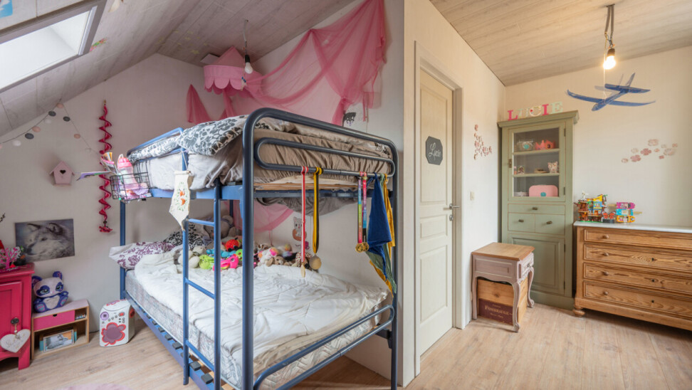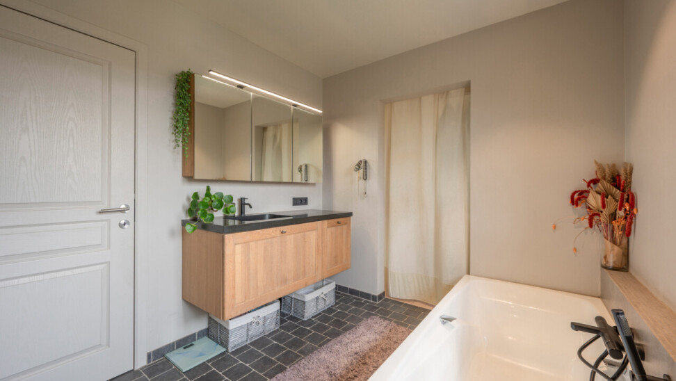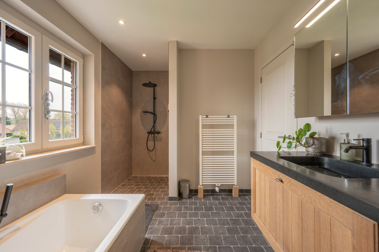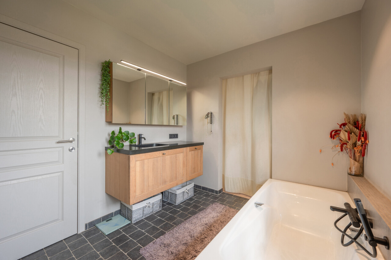 -Eerste verdieping: 3 slaapkamers, dressing, badkamer (met ligbad, inloopdouche, lavabomeubel) en apart toilet.