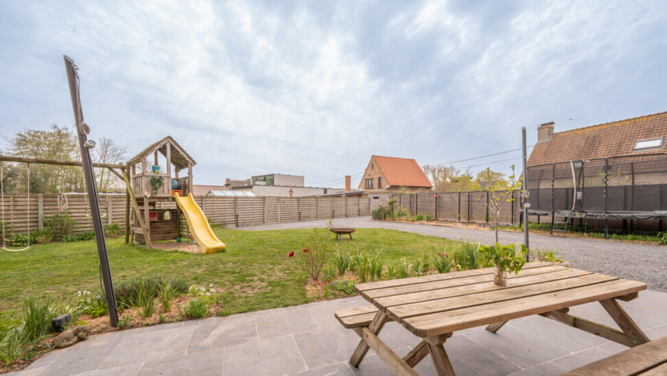 De woning en tuin zijn ZUIDGEORIËNTEERD. De ligging biedt u een vlotte verbinding met de kust, Brugge en het binnenland.