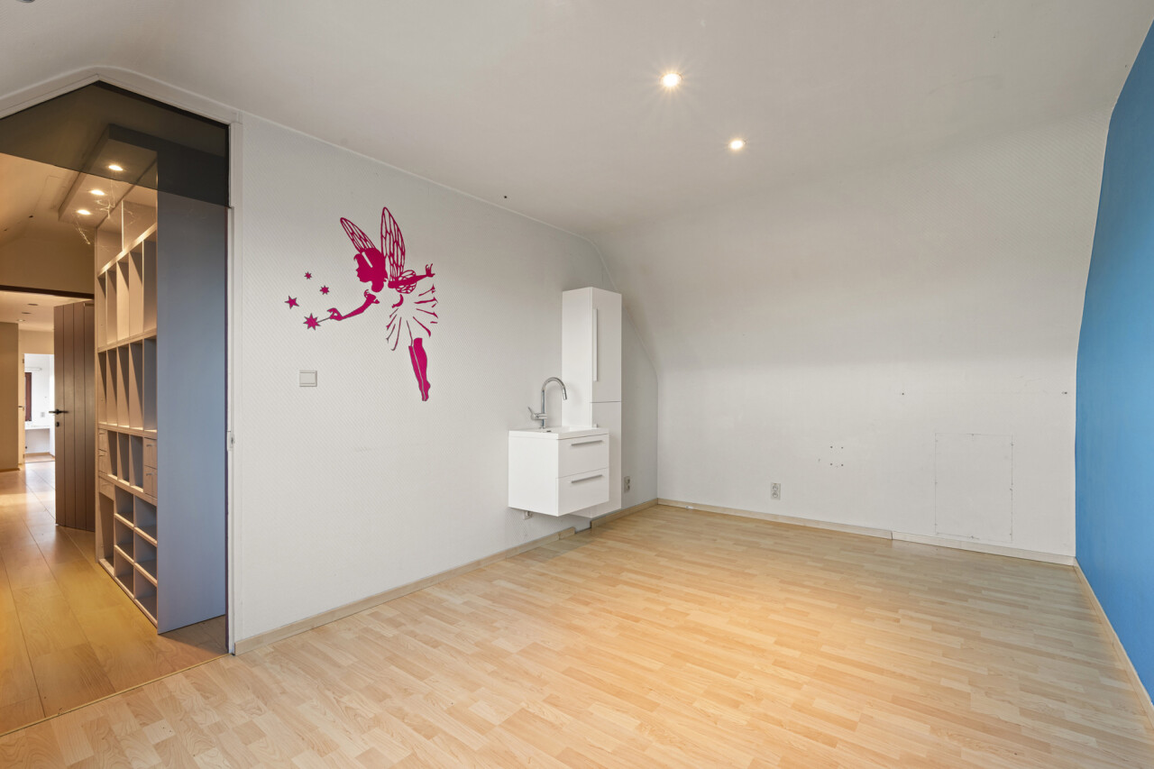 De woning bestaat momenteel uit een grote en een kleine woning. De grote woning bestaat uit een inkomhall met toilet, mooie woonkamer met mooie vergezichten, parket en een nieuwe haard, er is een erg ruime leefkeuken met eethoek, kelder, een berging en bureel/speelkamer. Boven zijn er 4 slaapkamers, waarvan een masterbedroom met een ensuite badkamer, een aparte douchekamer met infraroodcabine, apart toilet. In het aanpalende tweede huis zijn er 2 slaapkamers, een dressing, een ingerichte douchekamer met apart toilet, een ingerichte keuken en een mooie ruime woonkamer.