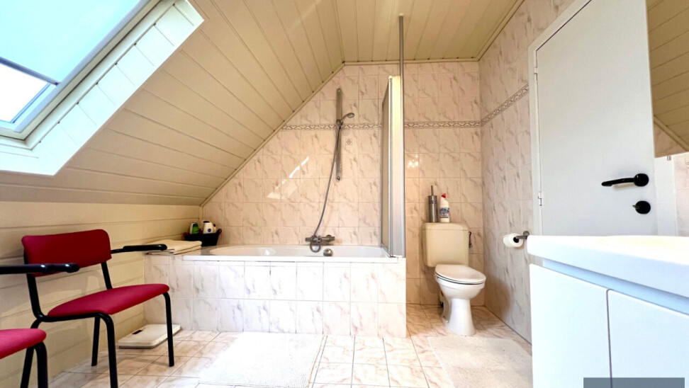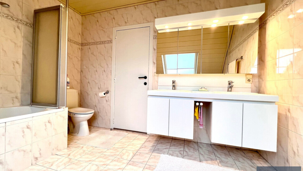 1e verdiep: 3 ruime slaapkamers - badkamer voorzien van dubbele lavabo, toilet en bad.
