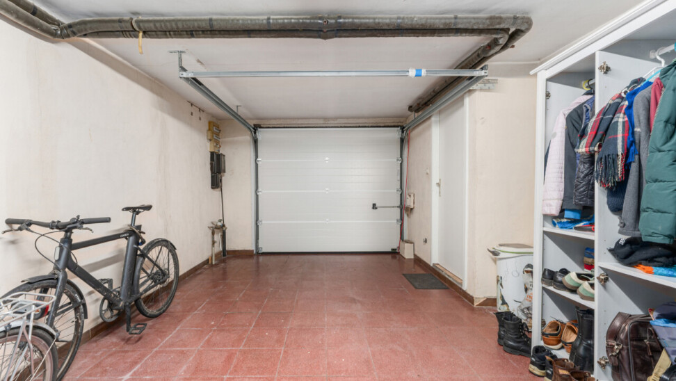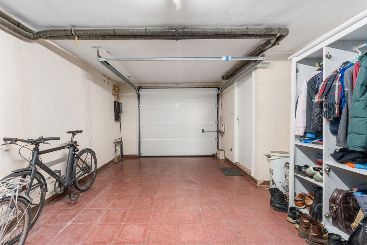 Gelijkvloers: inkomhal, garage met nieuwe sectionale poort, wasplaats en toegang tot terras en tuin.