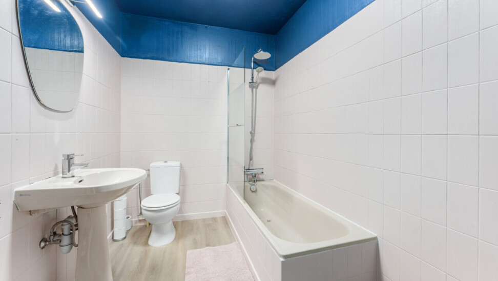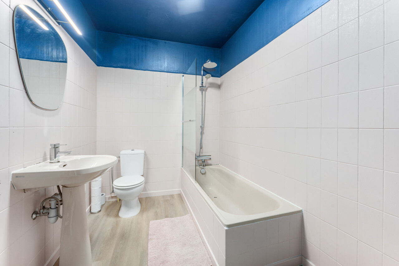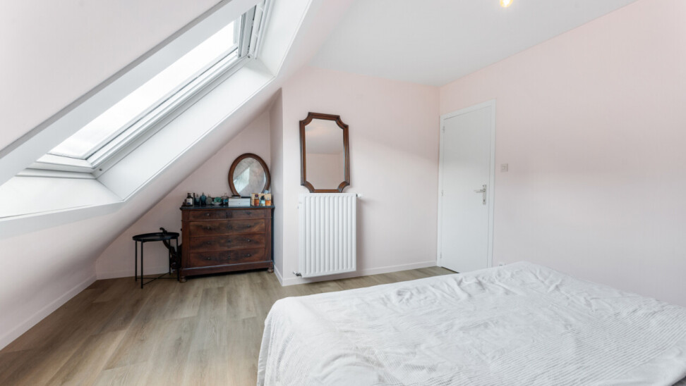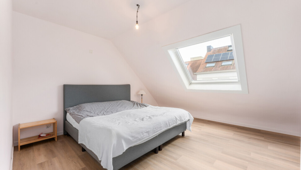 Tweede verdieping: 2 slaapkamers en badkamer (ligbad, lavabo en toilet).