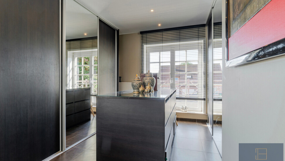 -eerste verdieping: nachthal, badkamer (met inloopdouche, toilet en dubbel lavabomeubel) en slaapkamer met dressing (opdeelbaar) en toegang tot zuidgericht dakterras, vaste trap naar tweede verdieping.