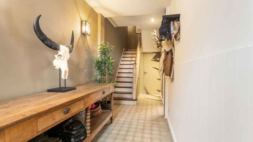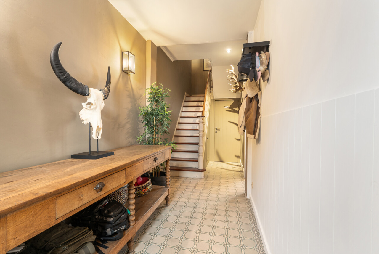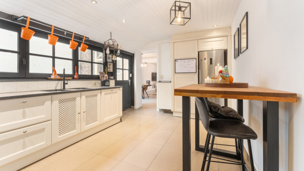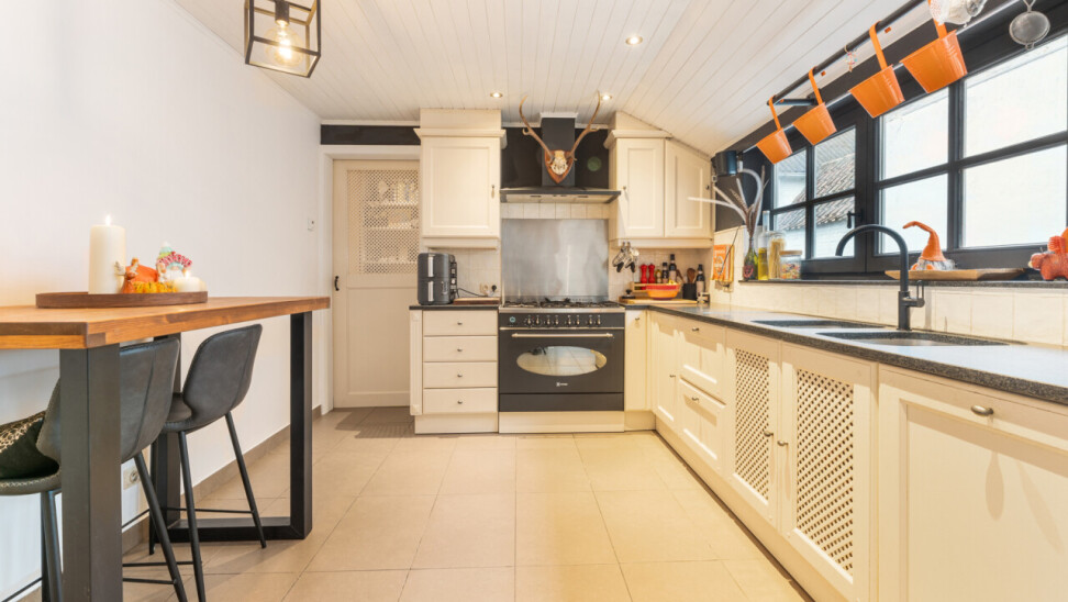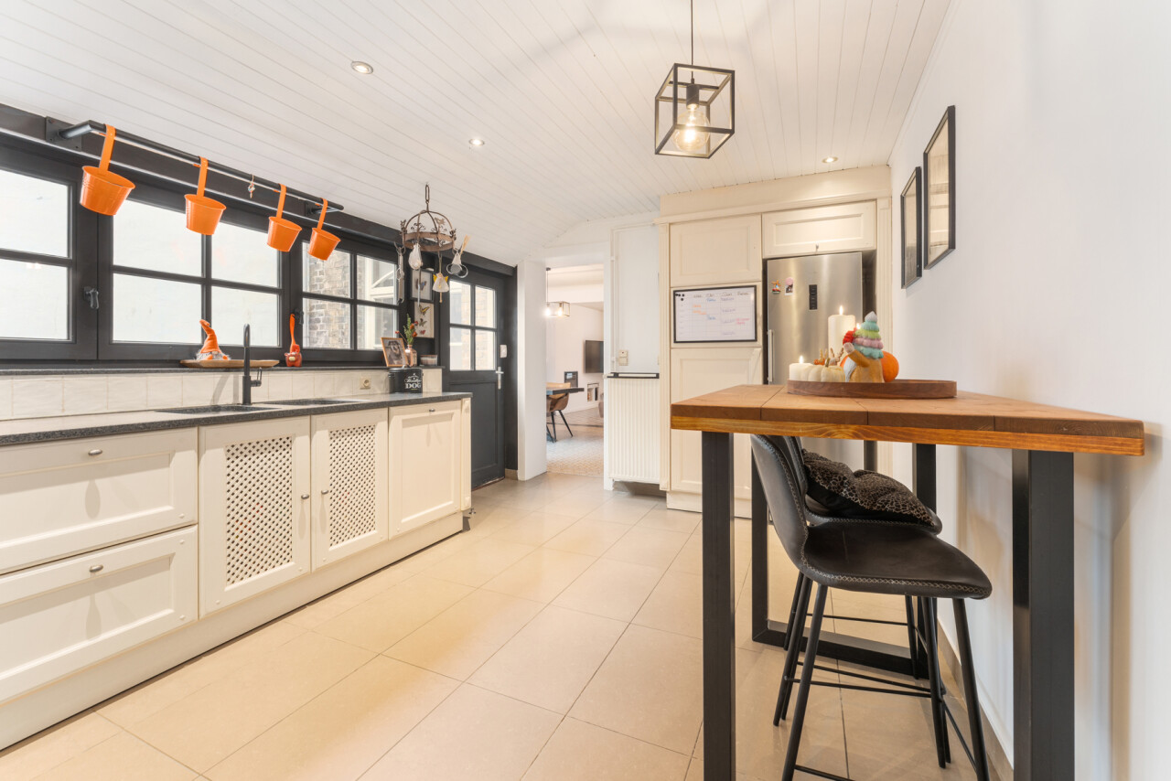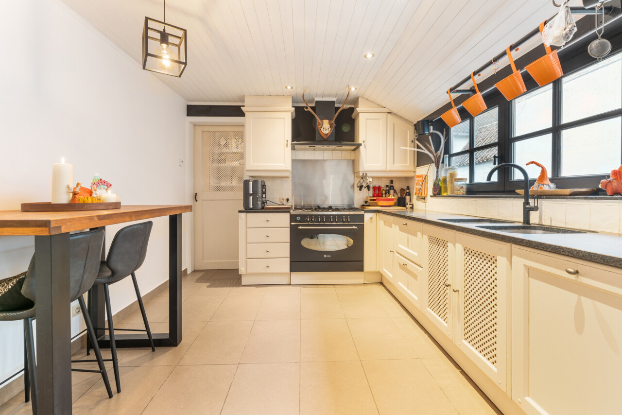 Deze woning heeft wat u zoekt. De renovatie is er gebeurd met oog voor het karakter en met behoud van de authentieke tegelvloeren, plankenvloeren, trap, zichtbare dakgebintes… Daarnaast werd modern comfort en degelijkheid toegevoegd met: keuken met hardsteen werkblad, nieuwe houthaard + nieuwe buizen,.. . Deze maakt extra radiatoren in de leefruimte overbodig. Wel zijn hiervoor leidingen voorzien achter het pleisterwerk. Verder werd de woning deels voorzien van nieuwe plafonds, aangepaste en goedgekeurde elektriciteit,..